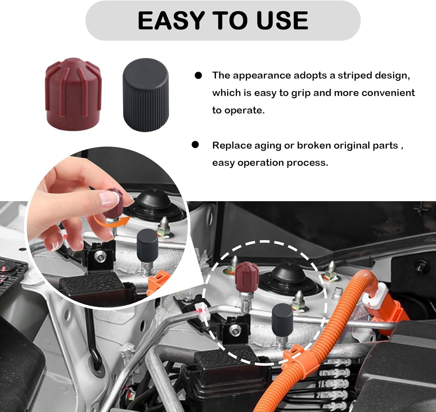 Sealed Protection: Our ac caps keep a secure seal, keeping sand, impurities from entering the air-conditioning system through the air-conditioning filling port and clogging the pipeline, make the air-conditioning system can operate normally