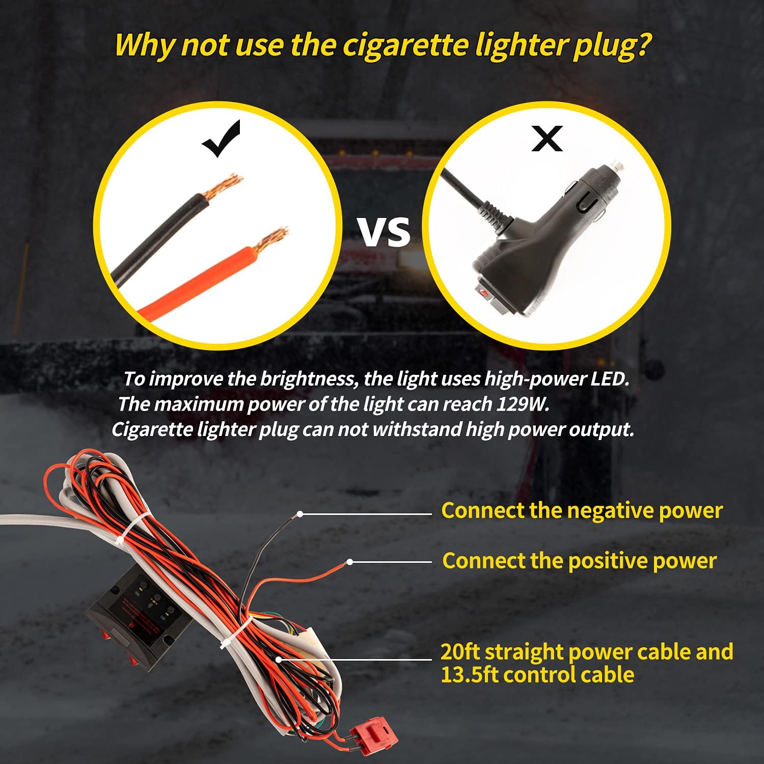 【EASY INSTALLATION】The light can be magnetically mounted or permanently mounted with screws. Includes 20ft straight power cable and 13.5ft control cable. Support 12 volt / 24 volt DC power input.Power: 129W.