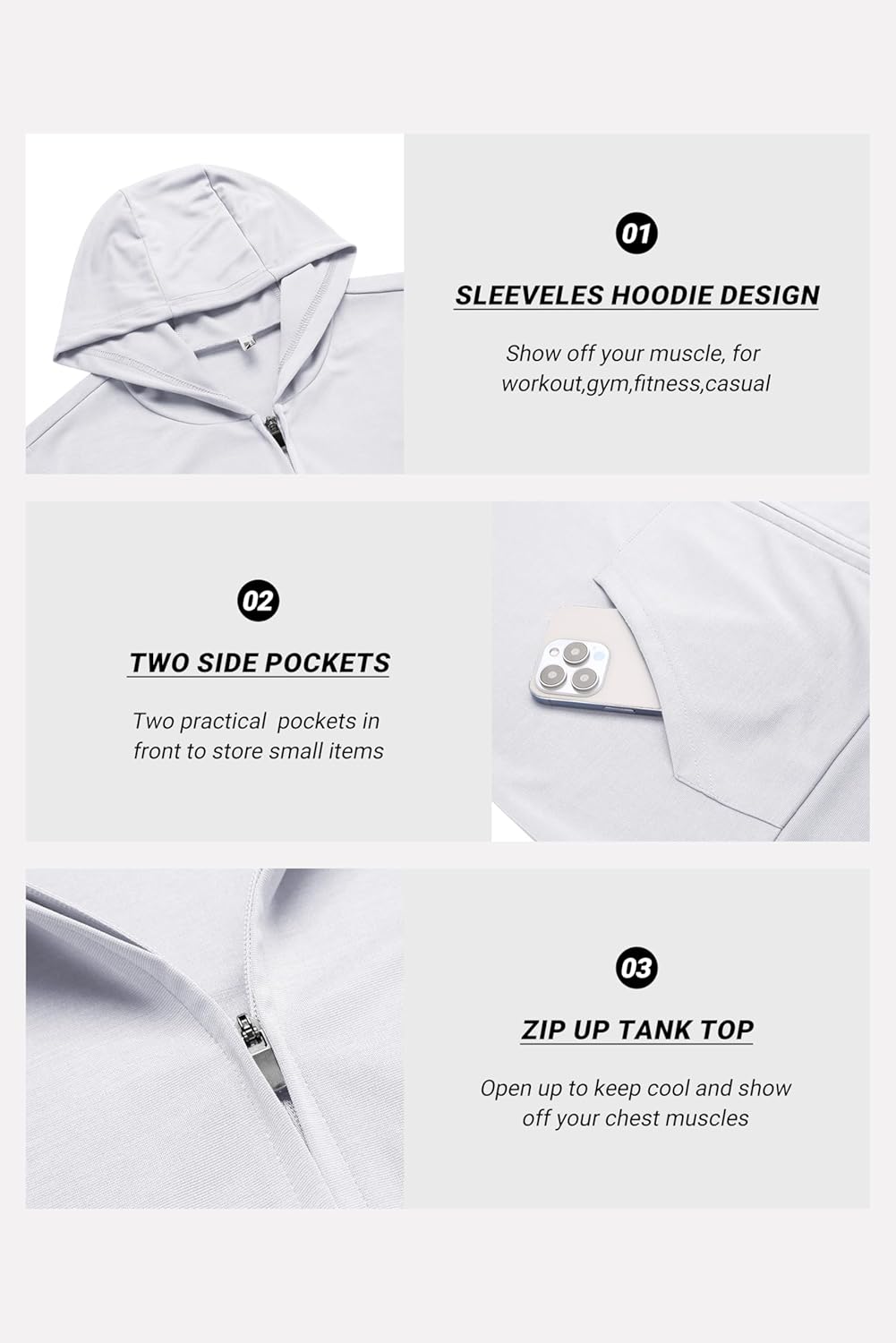 Sleeveless Zip Up Hoodies For Men Workout