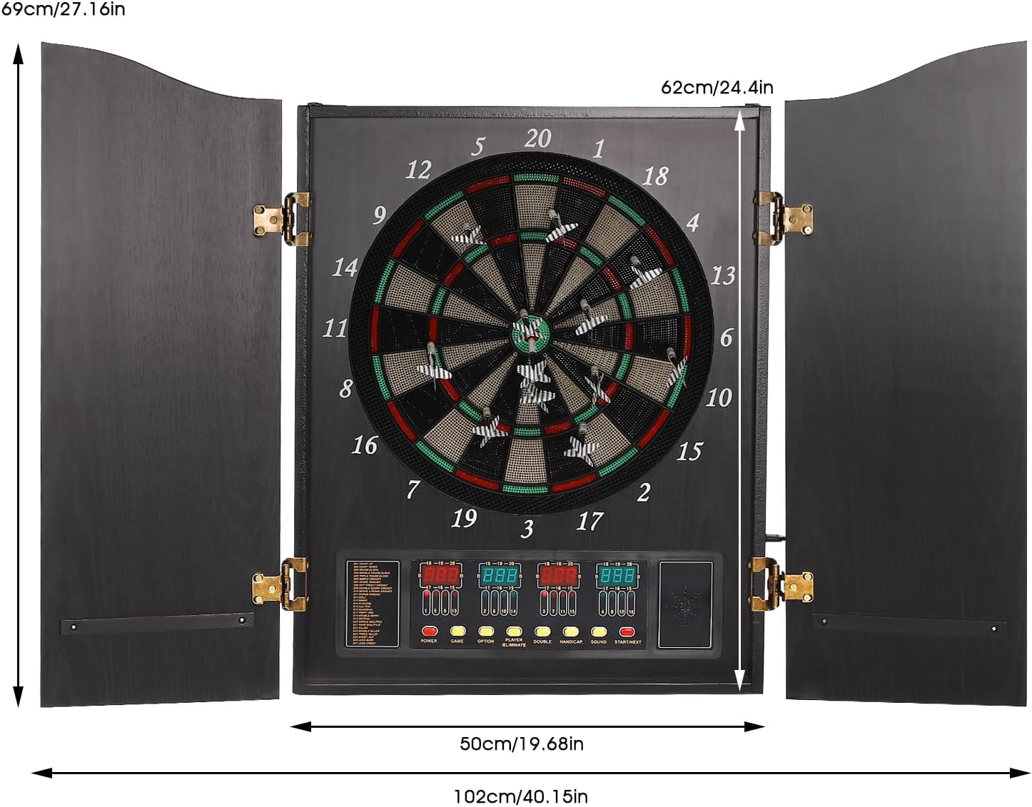 Game List: This Electronic Dart Machine has listed 27 kinds of games in the panel, which is convenient for you to observe and choose in time. The sparkling LED displays provide you with a clear view of scores and information without manual scoring