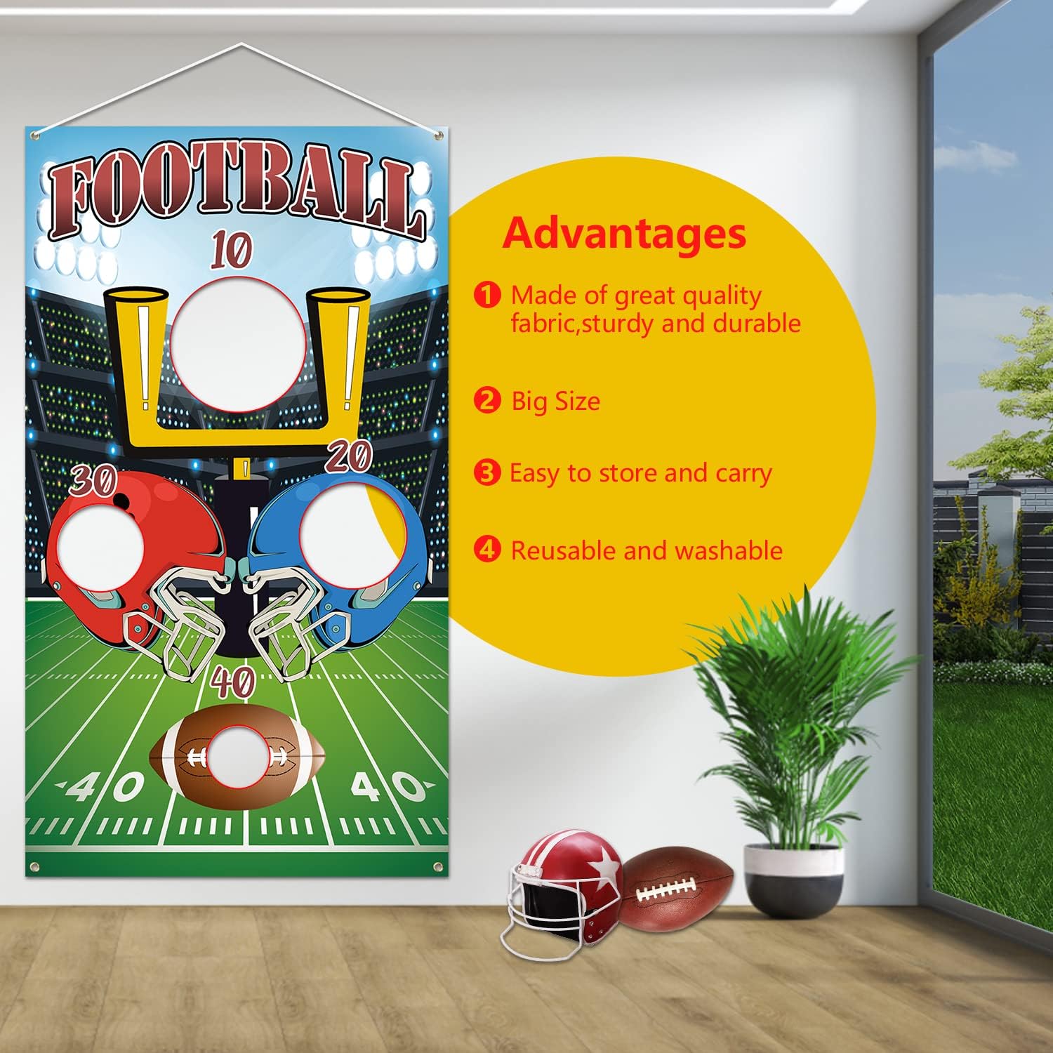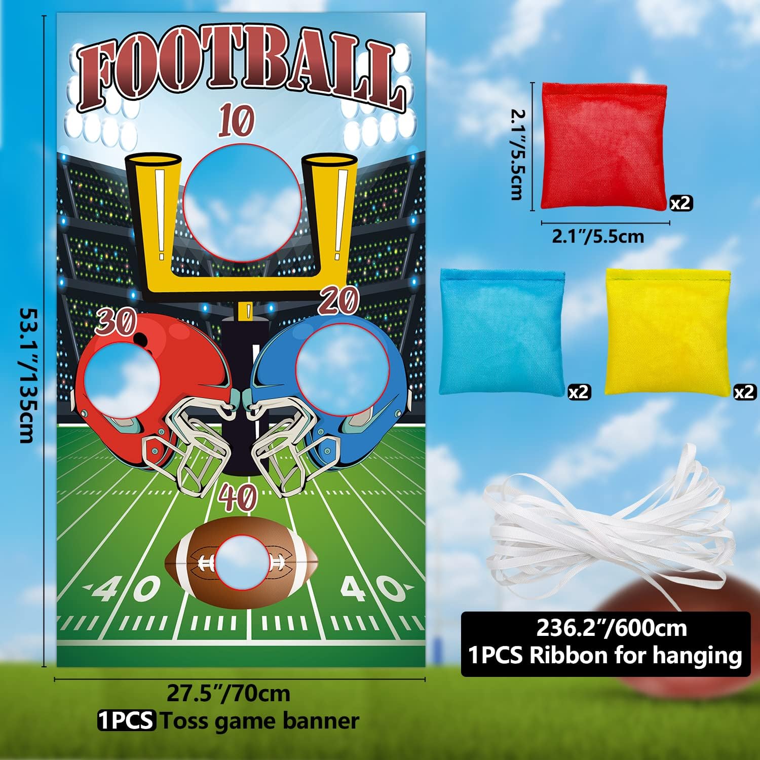 Football Toss Game with 6 Bean Bags – Backyard & Lawn Game for Kids & Adults – Family Tailgate Party Decorations – Indoor & Outdoor Use
