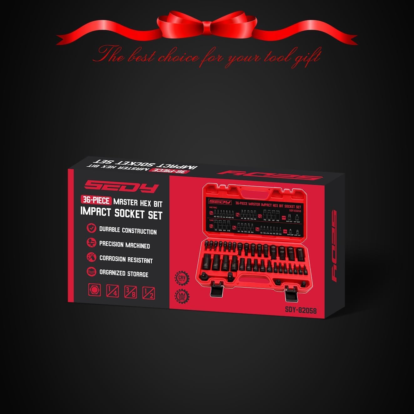 VERSATILE SET – Comprehensive 36-piece hex bit socket set includes 16 pc SAE sockets (1/4″ Drive: 1/4″, 7/32″, 3/16″, 5/32″, 1/8″, 3/32″, 5/64″. 3/8″ Drive: 1/2″, 7/16″, 3/8″, 5/16″, 9/32″. 1/2″ Drive: 3/4″, 11/16″, 5/8″, 9/16″.) and 16 pc Metric sockets (1/4″ Drive: 2mm, 2.5mm, 3mm, 4mm, 5mm, 5.5mm, 6mm. 3/8″ Drive: 7mm, 8mm, 9mm, 10mm, 12mm. 1/2″ Drive: 14mm, 15mm, 17mm, 19mm.), plus 4 socket adapters for enhanced versatility. Perfect for automotive, mechanical, offering precision and adaptability.