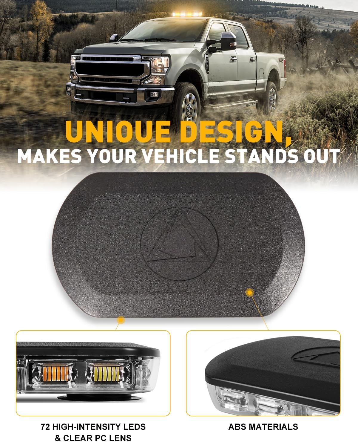 [SUPRT BRIGHT]: HLauto 700A rooftop strobe light bar is designed with 72 high-intensity LEDs, 360 degrees of coverage, and crystal clear lens, making it brighter than the other rooftop strobe beacon light. Easy to see day or night from 1,500ft in distance
