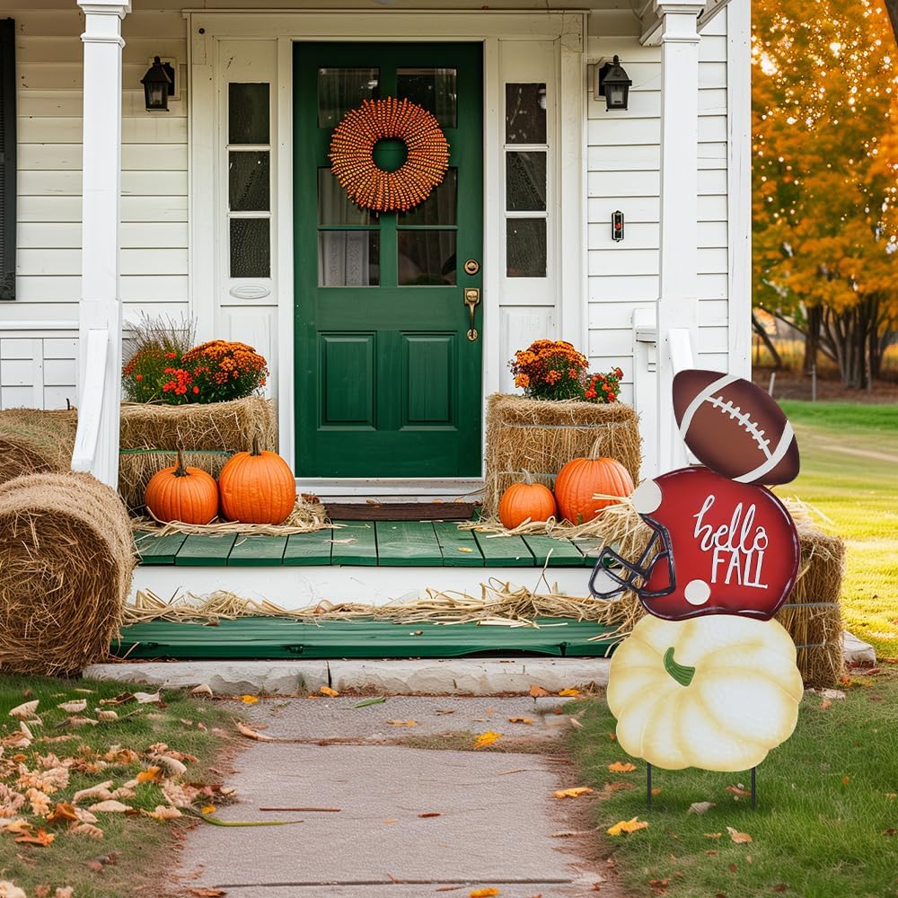 🏈BRIGHT FALL OUTDOOR DECORATIONS – When you start to feel the crispness in the air and see the leaves changing colors, it’s officially time to welcome fall in all its glory. This adorable set of pumpkin Garden Stakes with football and helmet will add the perfect charm to your planters, raised garden or landscape beds. Vibrant metal pumpkin set will bring a boost of color to any fall yard or garden! Guests in your garden won’t be able to miss these beautiful and unique metal pumpkin garden stakes!