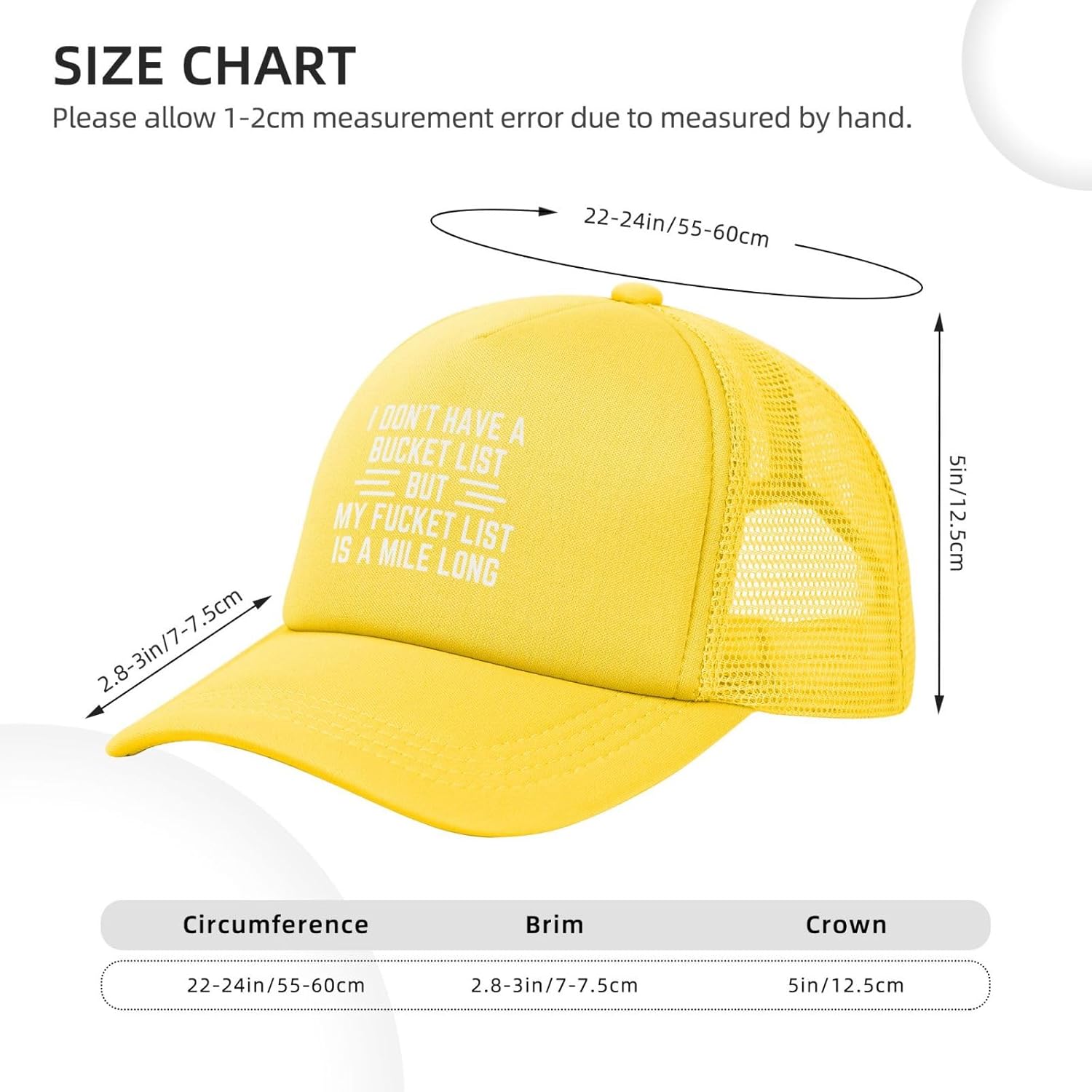 I Don’T Have A Bucket List But My Fucket List Is A Mile Long Hat Unisex Details: Trucker Hats For Suitable Place: Perfect For A Day In Sun Or At Night,Dairly Wear This Hats For Anytime/Anywhere. Some Examples Include: Participate In Elections,Beach, Park, Pool, Gym, Work, Outdoor Music Festivals, Performances ,Sporting Events, Gardening, Walking Your Dogs, Vacation, Yoga,Boating, Vacation, Camping, Hiking, Fishing, Christmas, Halloween, Floating, Weekend Getaway, Honeymoon, Bachelorette Parties, Stage Acting,Amusment Parks, Team Sports,Bbq Party, School, College Campus,Traveling And More! Great Hat Quality : Our The Baseball Cap.Made Of Lightweight, Breathable Polyester Fabric, Which Provides You Excellent Sun Protection.Bring On Your New Hats ,Gym Shoes, Yoga Pants, And Crop Top To Complete A Perfect Casual Style, Vintage Ponytail Style Cap, Great Gift For Boyfriden Girlfriend, Women, Wife, Mom, Friends, Coach, Coworkers, Teenagers If You Find Any Problems After Purchase, Please Contact Us And We Will Reply You In 24 Hours.