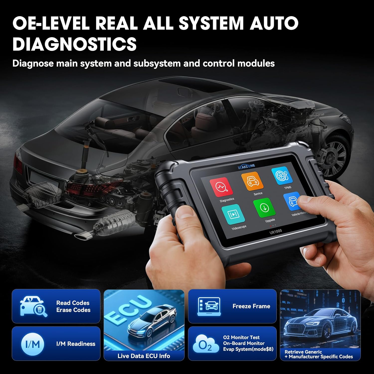 【ALL SYSTEM AUTO DIAGNOSE, FULL OBD2 FUNCTIONS】 UR1000 bi-directional control scanner access to all available systems and detailed control modules systems such as Engine, Transmission, ABS, airbag, Brake, TPMS, SRS and so on to read and clear fault codes to perform comprehensive scan and display realtime datastream with GRAPHIC or 4-in-1 compare graphics to tell you the vehicle health. And perform powerful READ FAULT CODES, CLEAR FAULT CODES,I/M Readiness,Freeze Frame,O2 Sensor Test,On-Board Monitoring,Evap System Test, auto-VIN/Vehicle Infor,Retrieve special codes,MIL,Read PCM Data,Read DTC etc OBD2 functions.