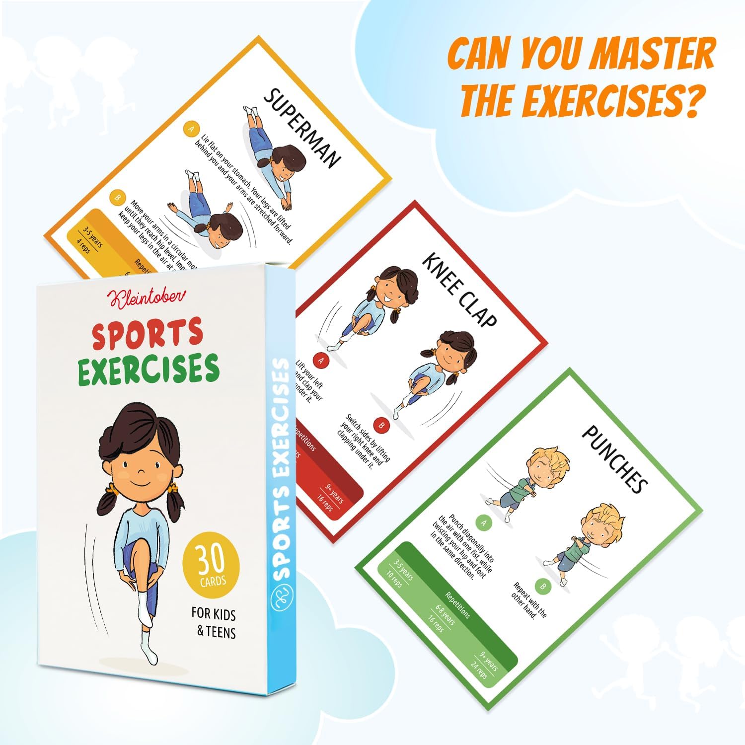 Kleintober Workout Cards for Kids & Teens I Gymnastics Equipment for Kids I Exercise Flash Cards for Kids 3+ I Workout Equipment for Indoor & Outdoor Use