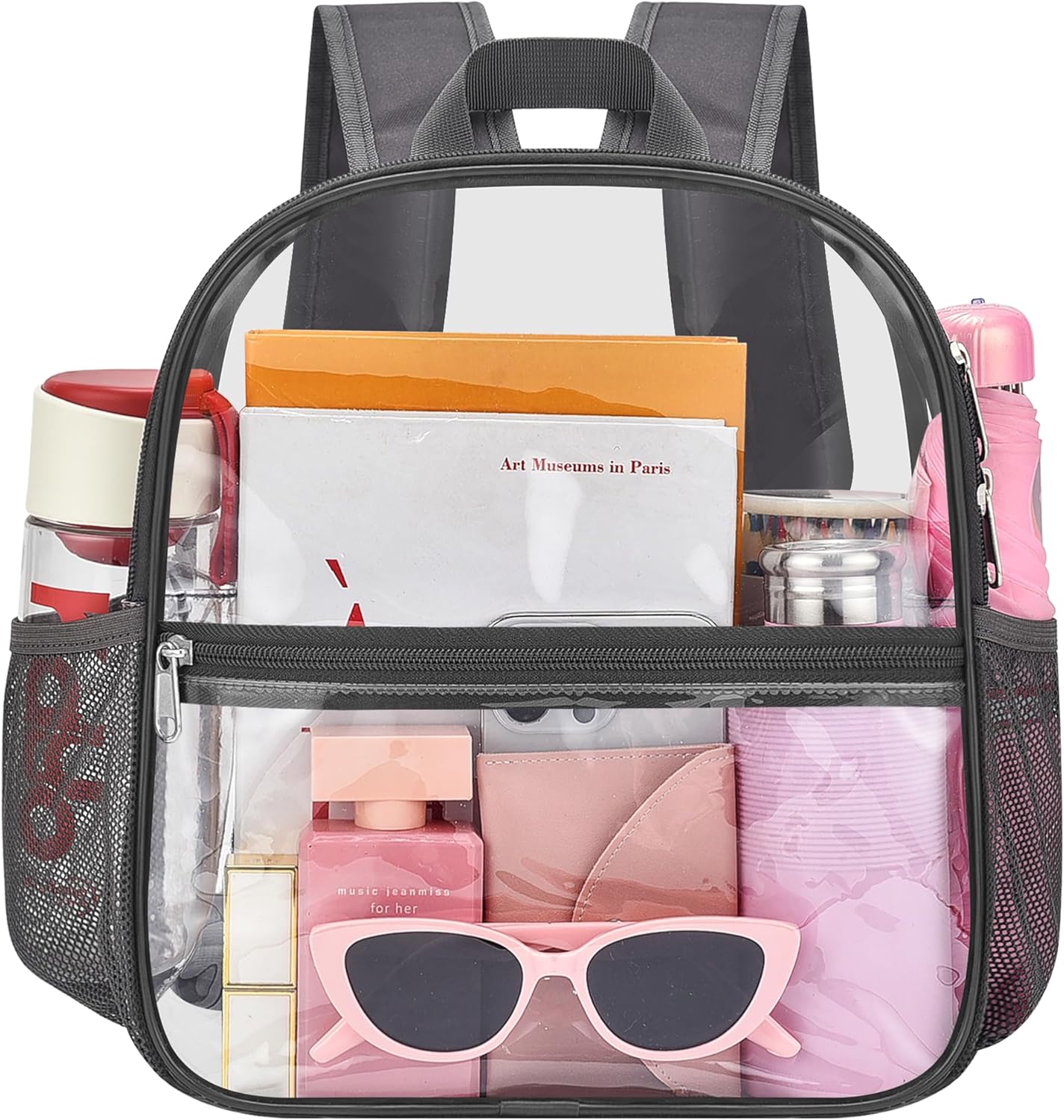【Clear Bag for Stadium Events】– Small clear backpack for stadium events measures 12x6x11 inches , effortlessly comply with clear bag policies of no larger than 12*6*12 inches. Completely transparent and see through all around,great for stadium,venues,concerts,music festivals,games,sporting events,high school and college football games,casinos,fair,airports etc.It makes life easier for you and the security guards.