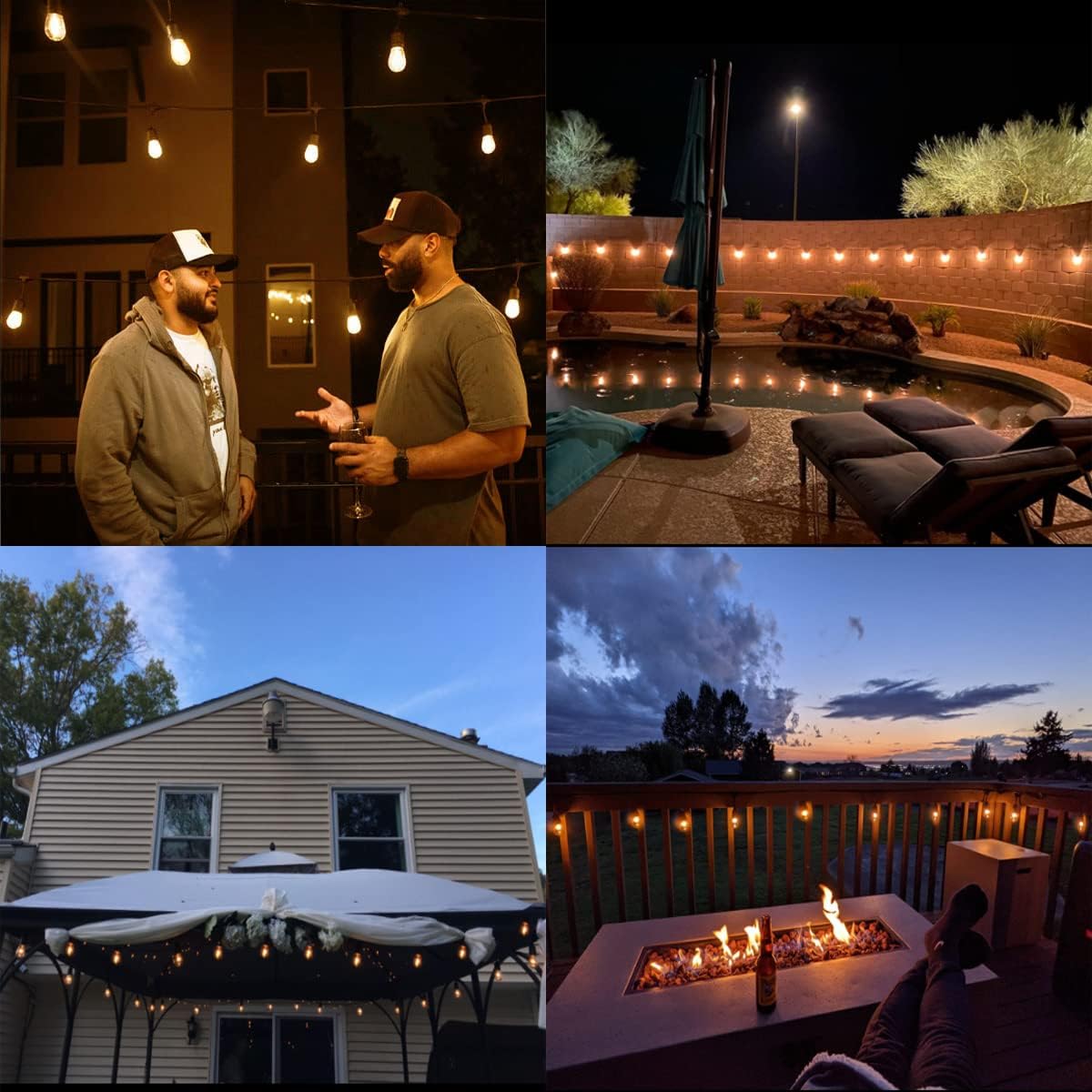 EIKOSON Outdoor LED String Lights make it easy to transform your backyard into an enchanting outdoor oasis.outdoor light string emits the most suitable light color temperature๏ผbrightness to create a perfect warm and soft lights atmosphere for romantic wedding, warm family reunion, happy birthday party, various festival party and etc.
