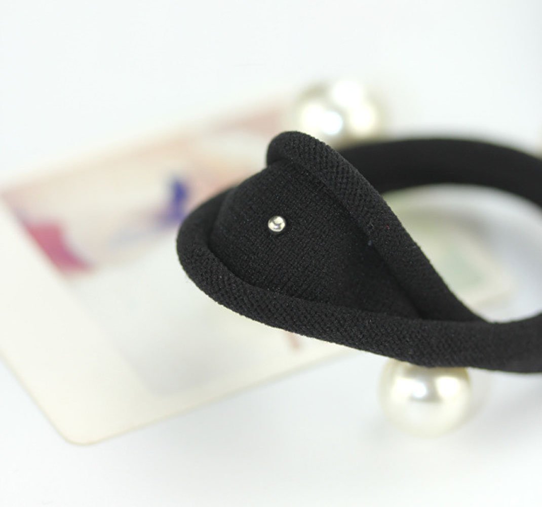 10 Pcs Women’s Artificial Pearl Black Elastic Rubber Headbands – No Damage Seamless Hair Ropes with Ponytail Holders