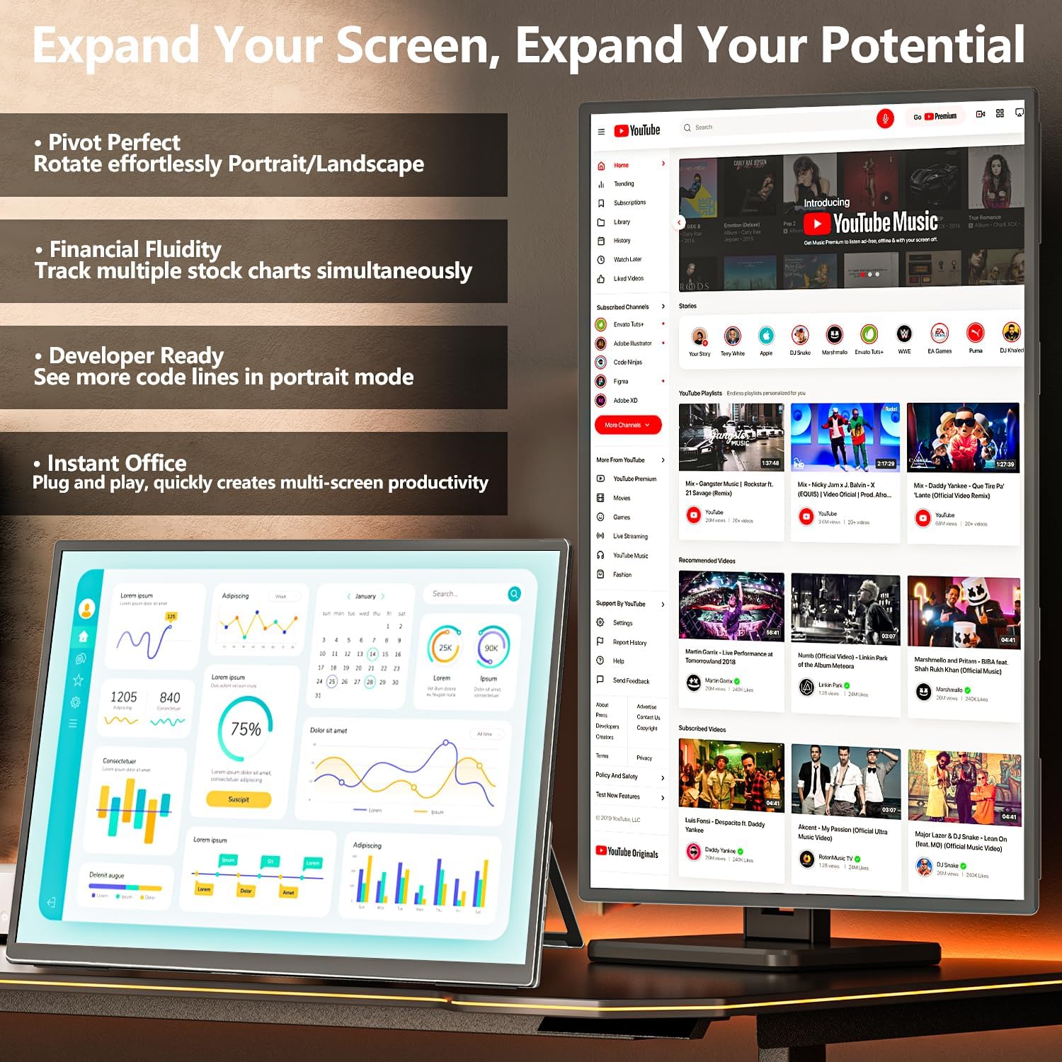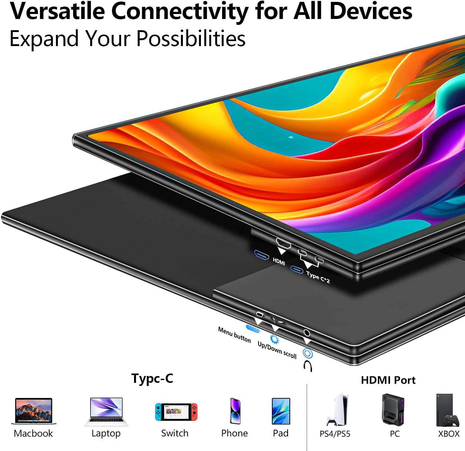 【Plug & Play, Broad Compatibility】The 24 inch portable monitor requires no driver installation—just plug and play for quick and easy setup. Equipped with full-function USB-C and HDMI ports, it is compatible with a wide range of devices, including laptops, desktops, MacBooks, tablets, and gaming consoles like PS5, PS4, Xbox, and Switch.