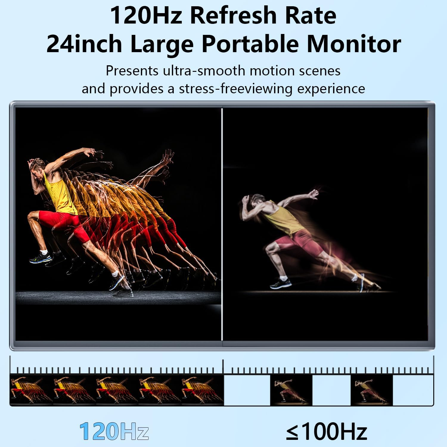 1080P Portable Monitor 24″ 120Hz Travel Monitor 120% sRGB External Second Screen for Desktop Laptop Mini PC MacBook W/Stand HDMI USB-C Gaming Display for PS5/Xbox (OS24-1080P)