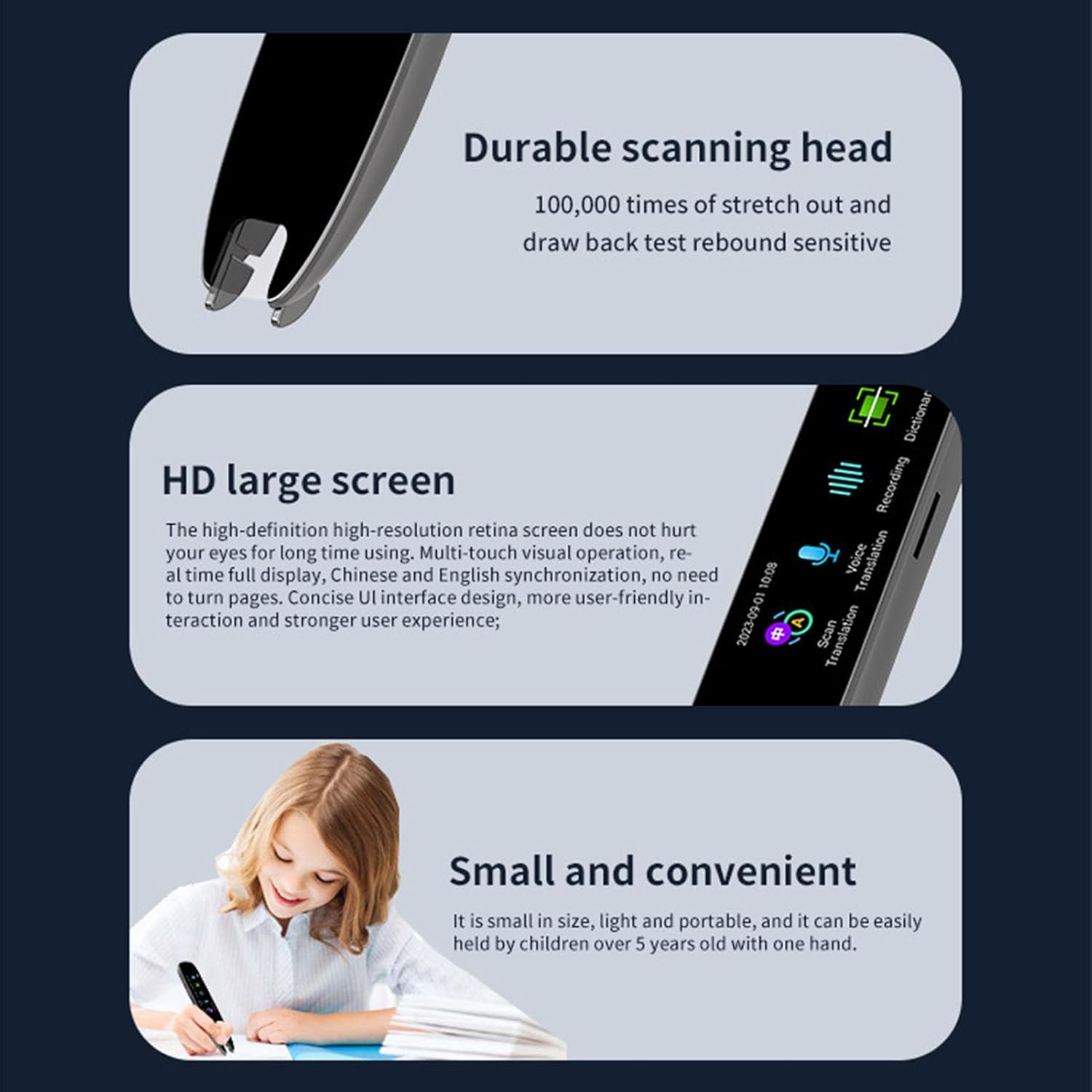 [Easy to Use] Featuring a 2.99in hd sn and rt for 22 scanned translation languages, this pen ensures easy understanding of languages globally
