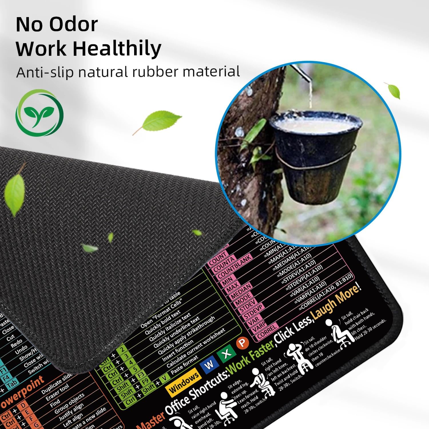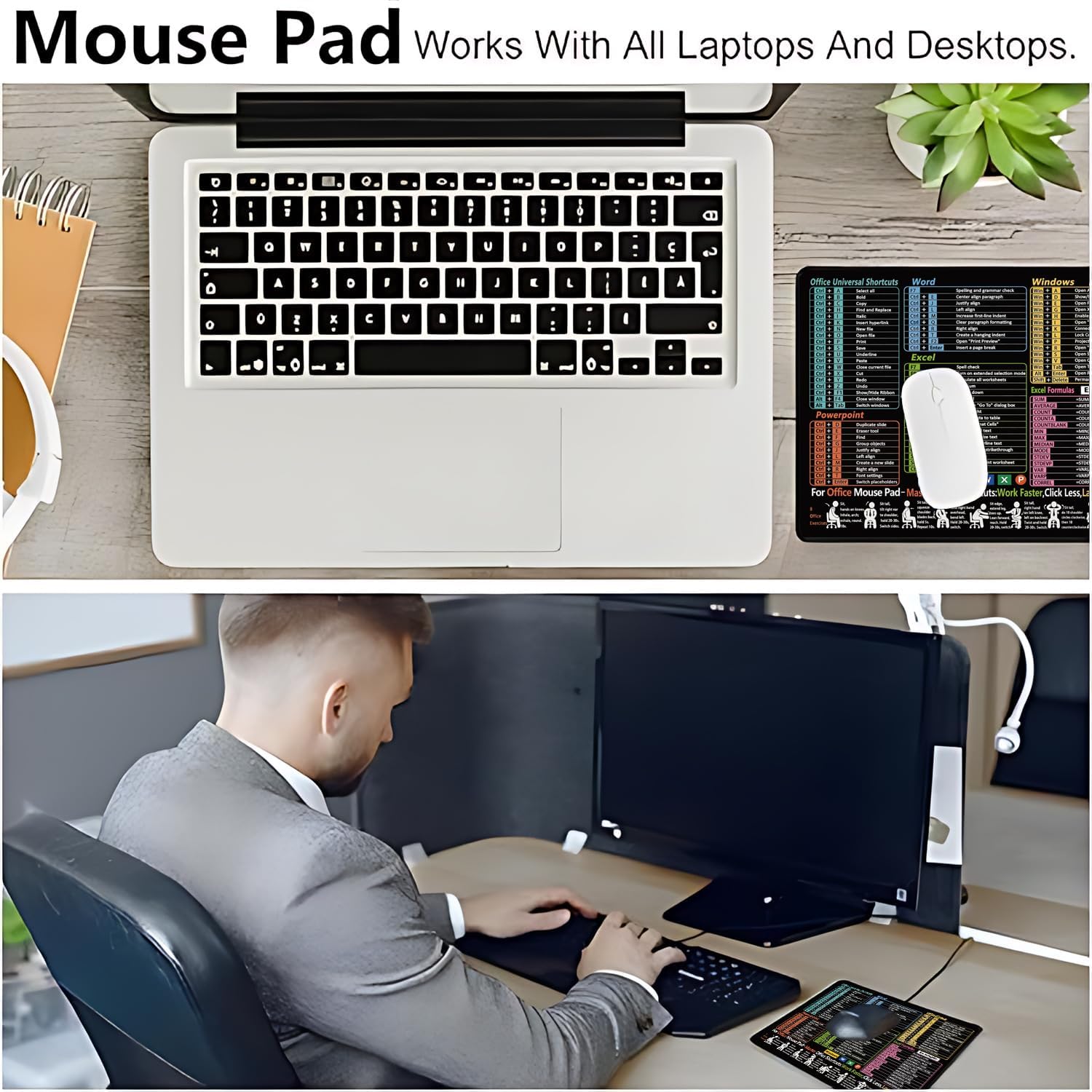 MOUSE MAT 11.8″x9.8″ Desk Mouse Pads INCLUDE – 1 x Excel, Word, PowerPoint, Windows Cheat Sheet Mouse Pad. 1 x Excel Spreadsheet Mouse Desk Mat.