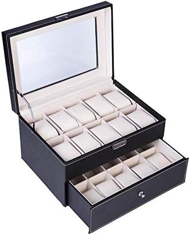 20 Slot Wooden Watch Box Organizer with Dual Layers, Black Elegant Wood Display Case for Men & Women Watches, Jewelry Storage Holder with Glass Lid