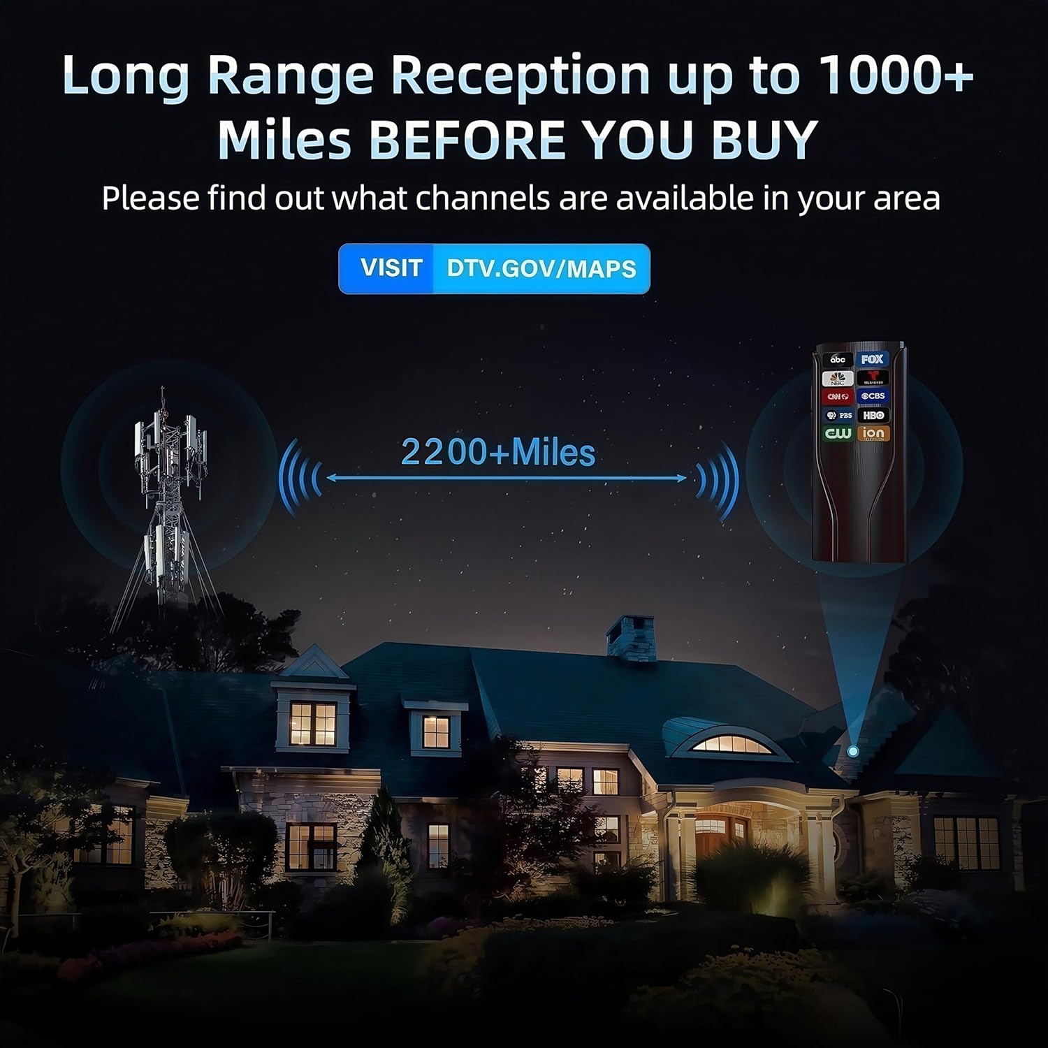 2200+ Miles Long Range Digital HD TV Antenna Indoor/Outdoor for Local Channels,TV Antenna for Smart TV and All Older TV’s,Support 4K 1080p with Amplifier Signal Booster and 18ft HD Cable