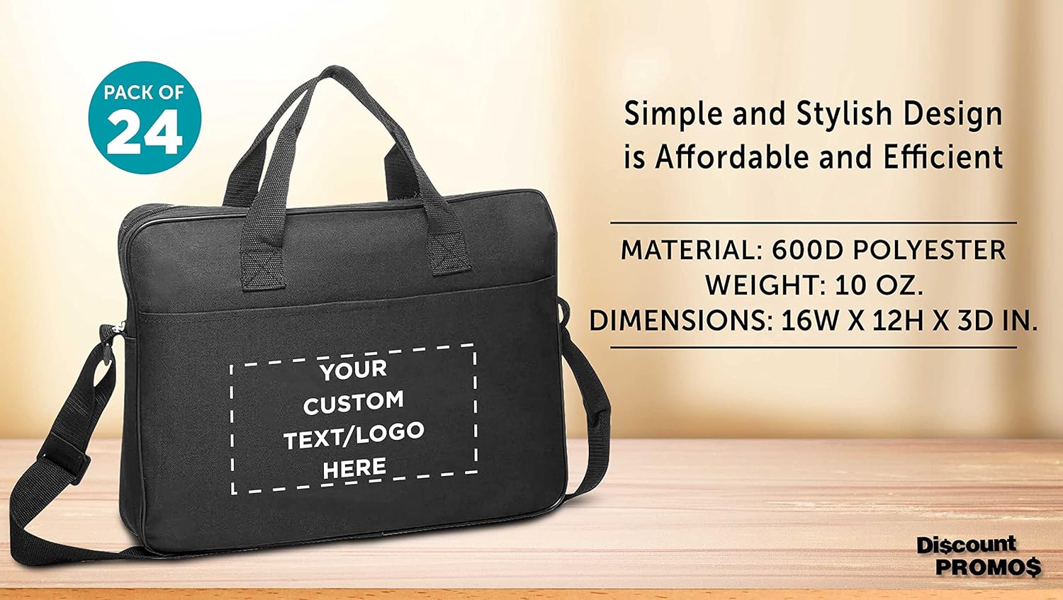 24 Polyester Messenger Bags Set – Customizable Text, Logo – Adjustable Straps, Reinforced Straps, Front Pocket, Everyday Use – Black