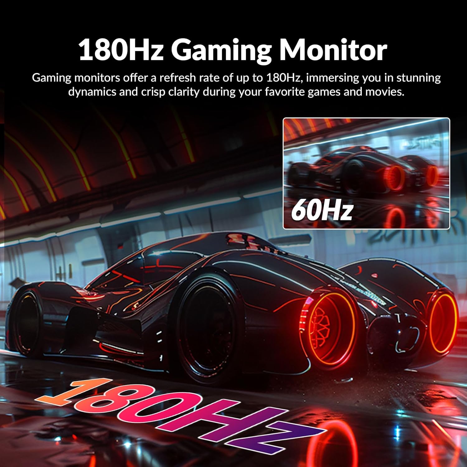 27 Inch Gaming Monitor, 180Hz 1ms FHD 1080P Fast IPS Display, HDR10, 108% sRGB, FreeSync, 2X HDMI 2.0 & DP 1.4, Wall Mount Compatible