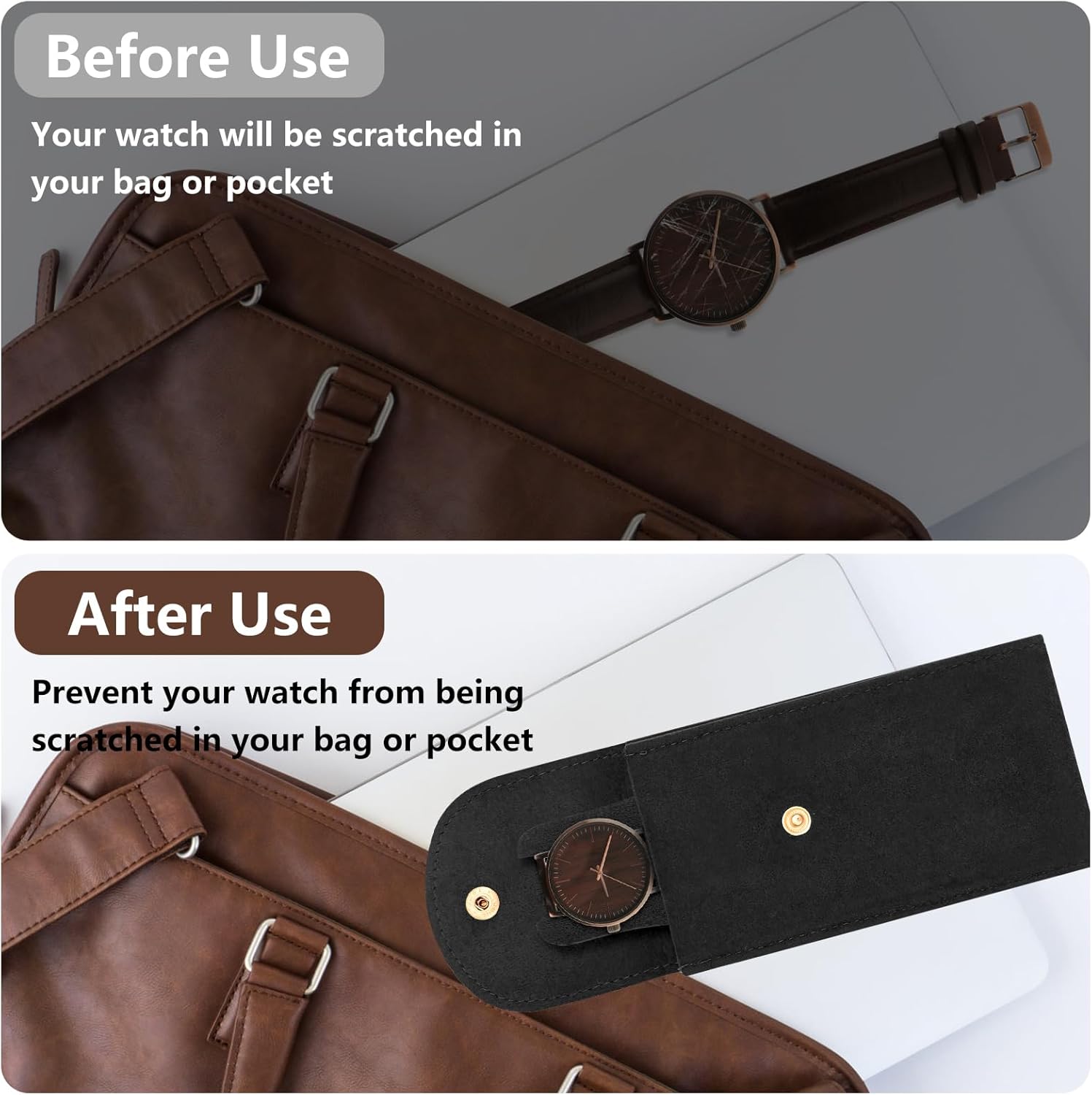 【Lightweight and Portable】Designed with travel in mind, our watch pouch is lightweight and compact, allowing you to conveniently carry and store your watches wherever you go.
