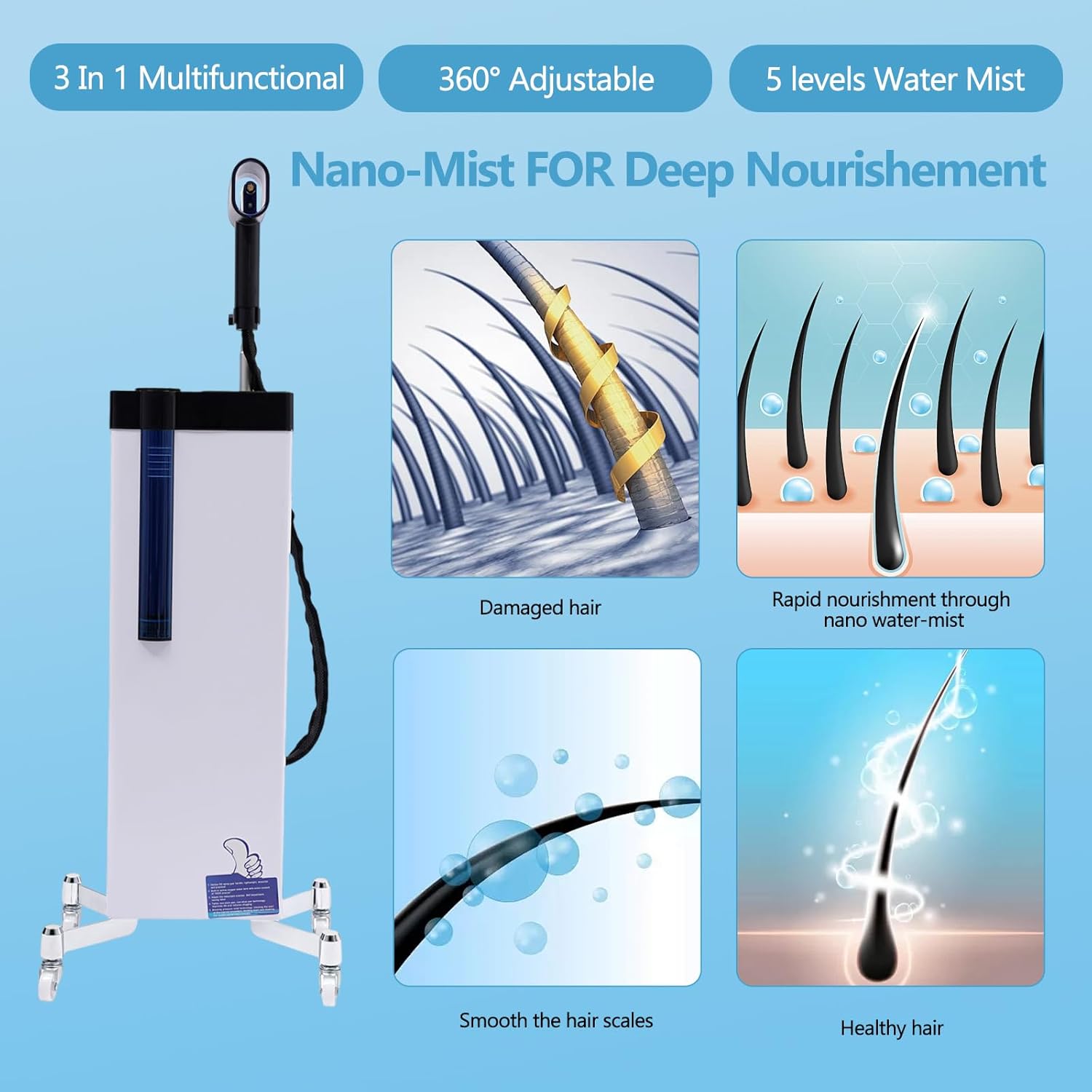 3-in-1 Nano Hair Steamer,1300W Vertical Beauty Salon Hair Dryers, Professional Hair Processor Nanoscale Spray for Hair Care Hair Repair Salon Spa Equipment (Black) (White)