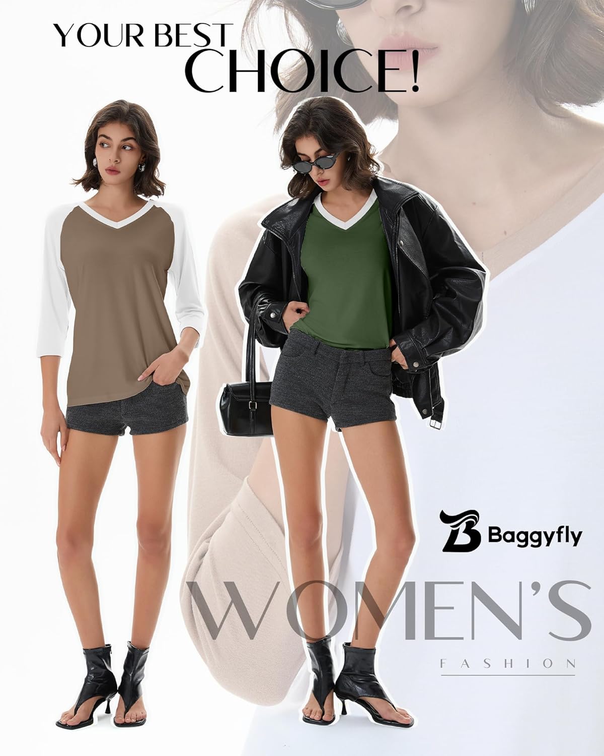 3 Pack Women’s V Neck 3/4 Sleeve Shirts, Raglan Color Block Tees Baseball Style Loose Casual Tops