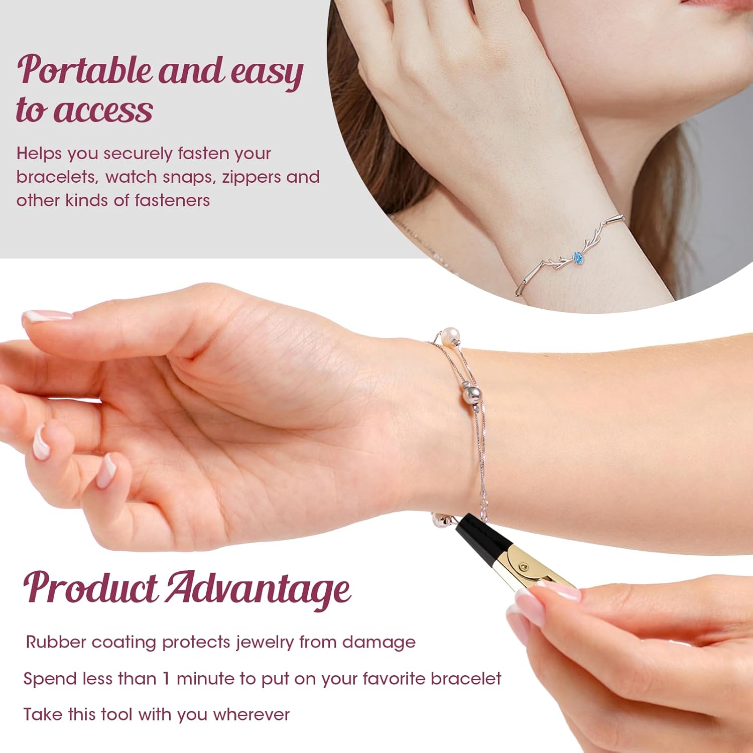 Make Every Jewelry Experience Effortless!Upgrade your jewelry routine with this reliable bracelet fastening tool. Say goodbye to struggling with clasps and hello to a hassle-free, elegant solution. Order yours today and enjoy a smoother way to accessorize!