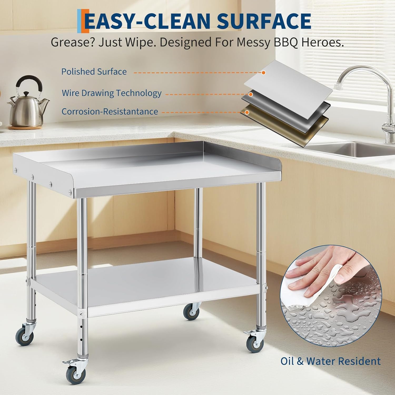 【NSF Certified & 400 lbs Heavy-Duty】 NSF-certified stainless steel construction supports 400 lbs capacity, meeting strict food safety standards for commercial kitchens, outdoor BBQs, and food trucks.