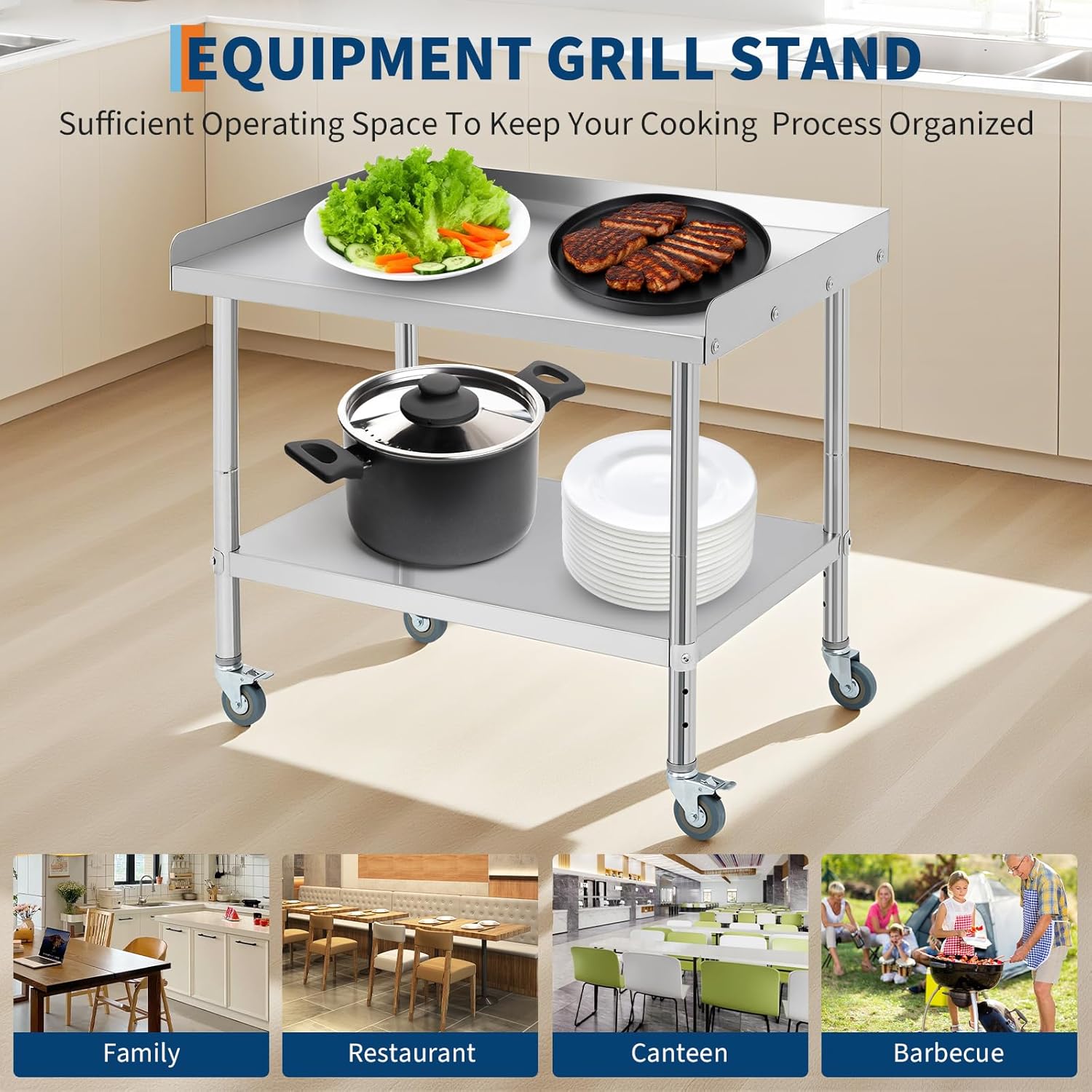 36x24x30 Inch Stainless Steel Equipment Grill Stand Table NSF Certified with 5″ Wheels, 400 Lbs Capacity, 2″ Edge Baffle, for Hotel, Home, Commercial Restaurant Kitchen