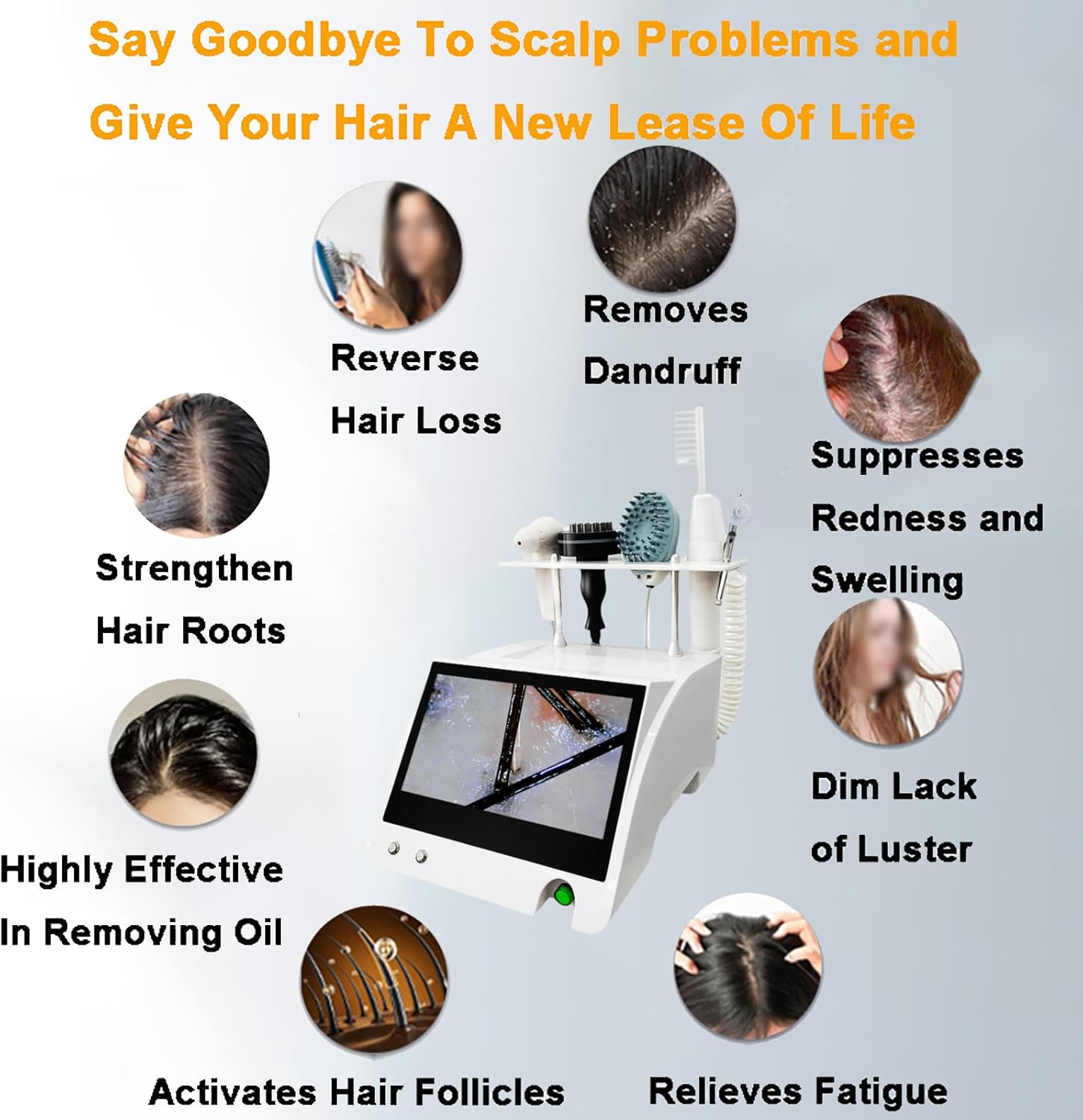 5 in 1 Scalp Skin Hair Follicle Scalp Detector, Multifunction Hair Analyzer Hair Care Machine, 50X 200X Lens Scalp Health Detection for Home Salon Beauty Salon