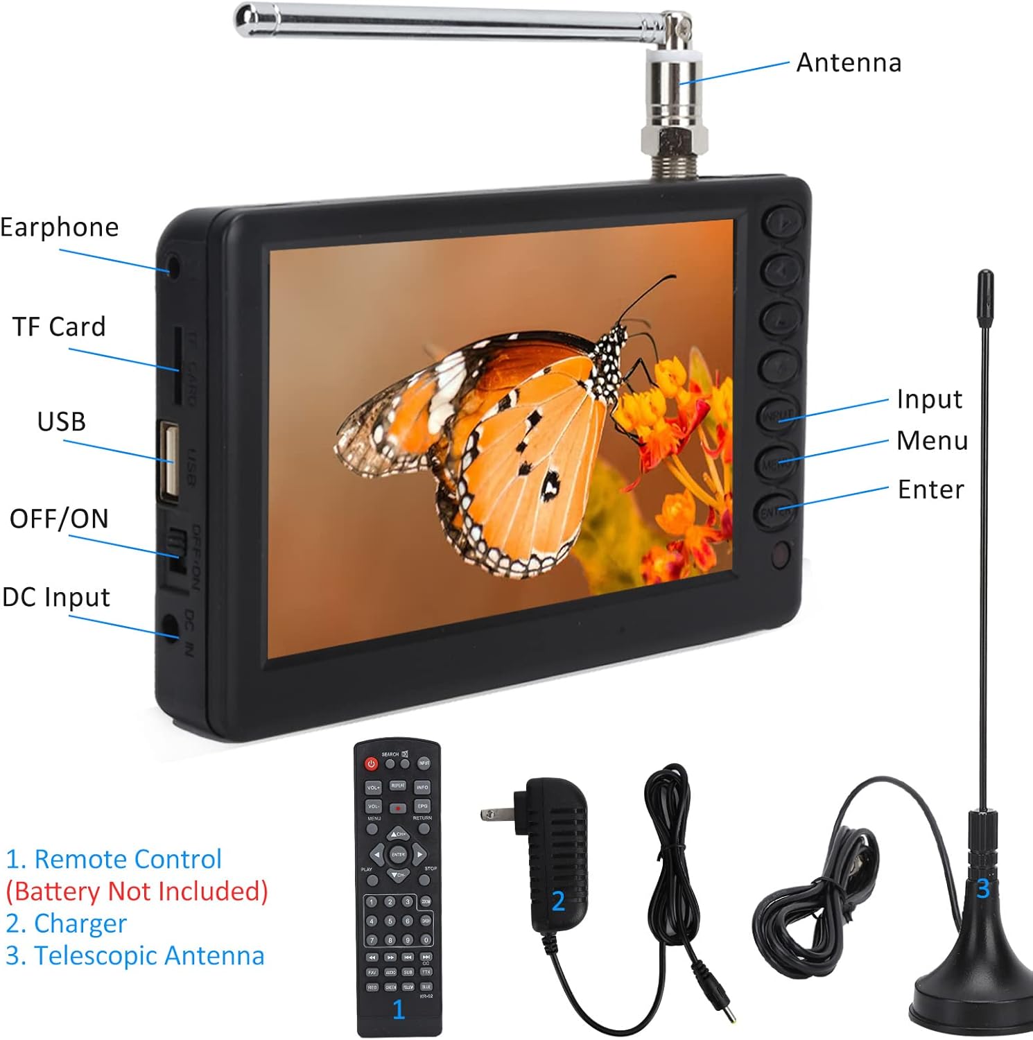 5 inch Portable TV, ATSC HD TFT LED Pocket Digital Television Mini TV, 1080P Digital TV with Remote Control, 1500mAh Rechargeable Battery, Support USB, TF Card, Small ATSC TV for Car Camping Kitchen
