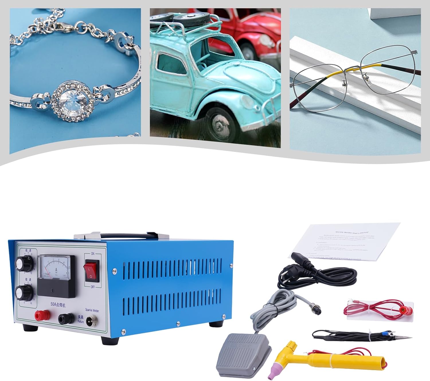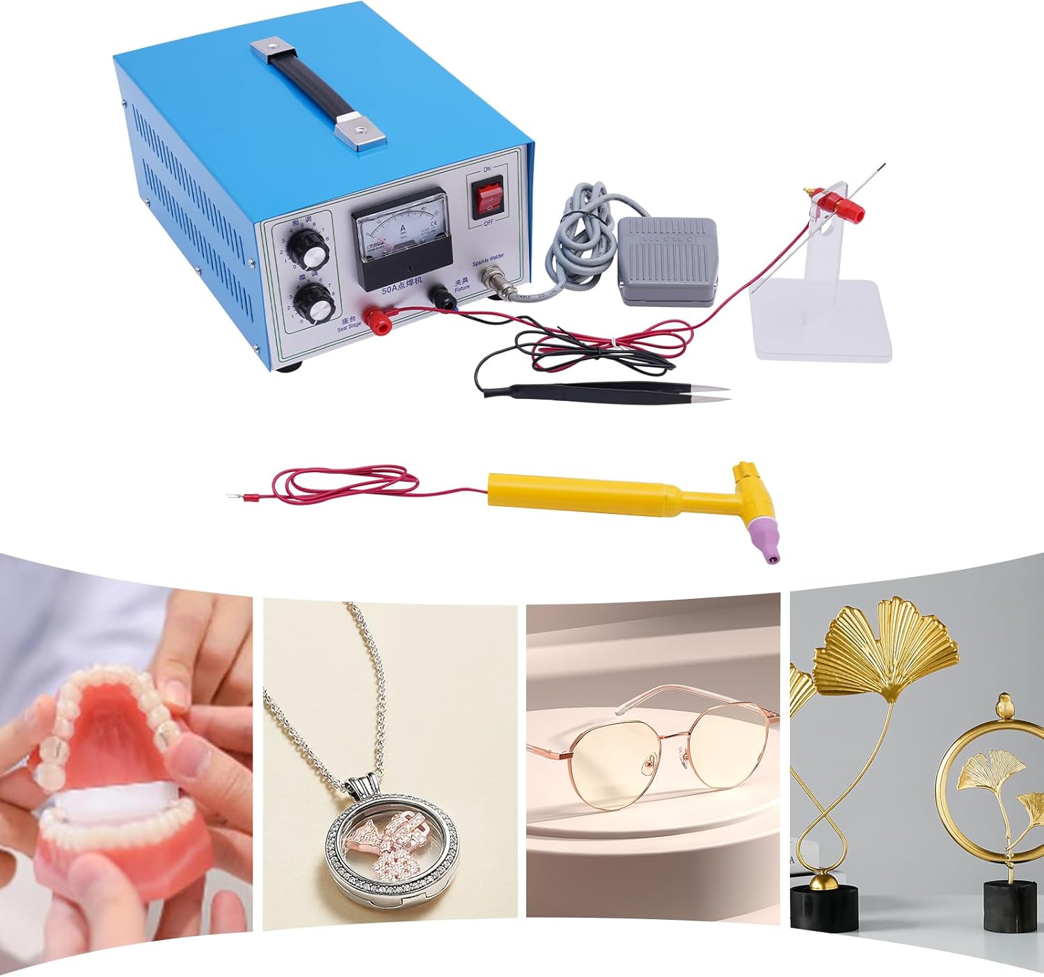 50A 110V Jewelry Spot Welder, 500W Pulse Sparkle Spot Welder Machine with Handle Tool Jewelry Welding Tool for Gold Silver Platinum Adjustable Power for Glasses Repair, Jewelry, Handicrafts