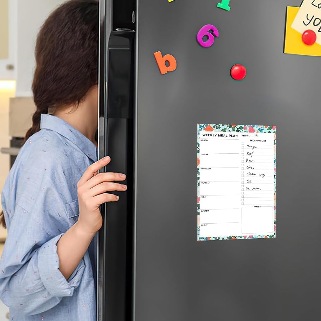 【Easy Tear-Off Shopping List】The magnetic meal planner for refrigerator is easy to tear off, which is convenient for updating your meal plan. The shopping list can be torn off and taken to the supermarket. It is more convenient to shop according to the list