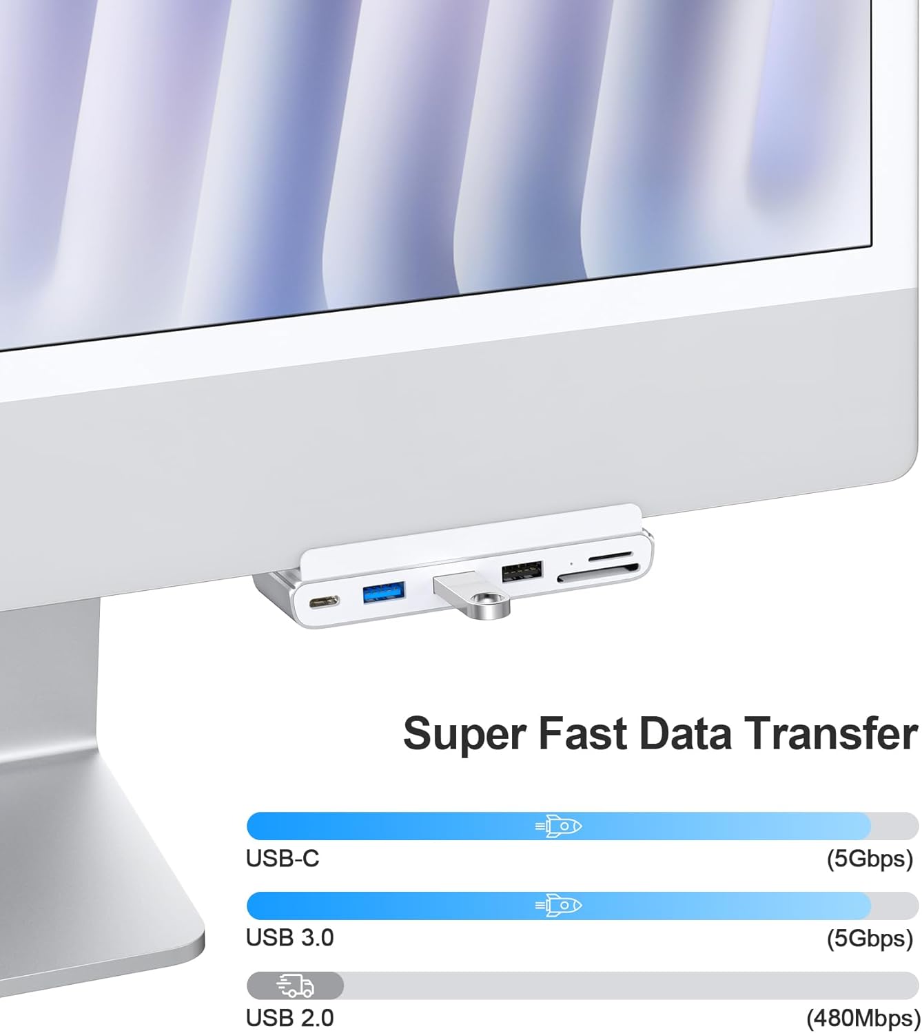 iMac hub transfer speeds up to 5Gbps, can support large file transfer, fast transfer without long wait.