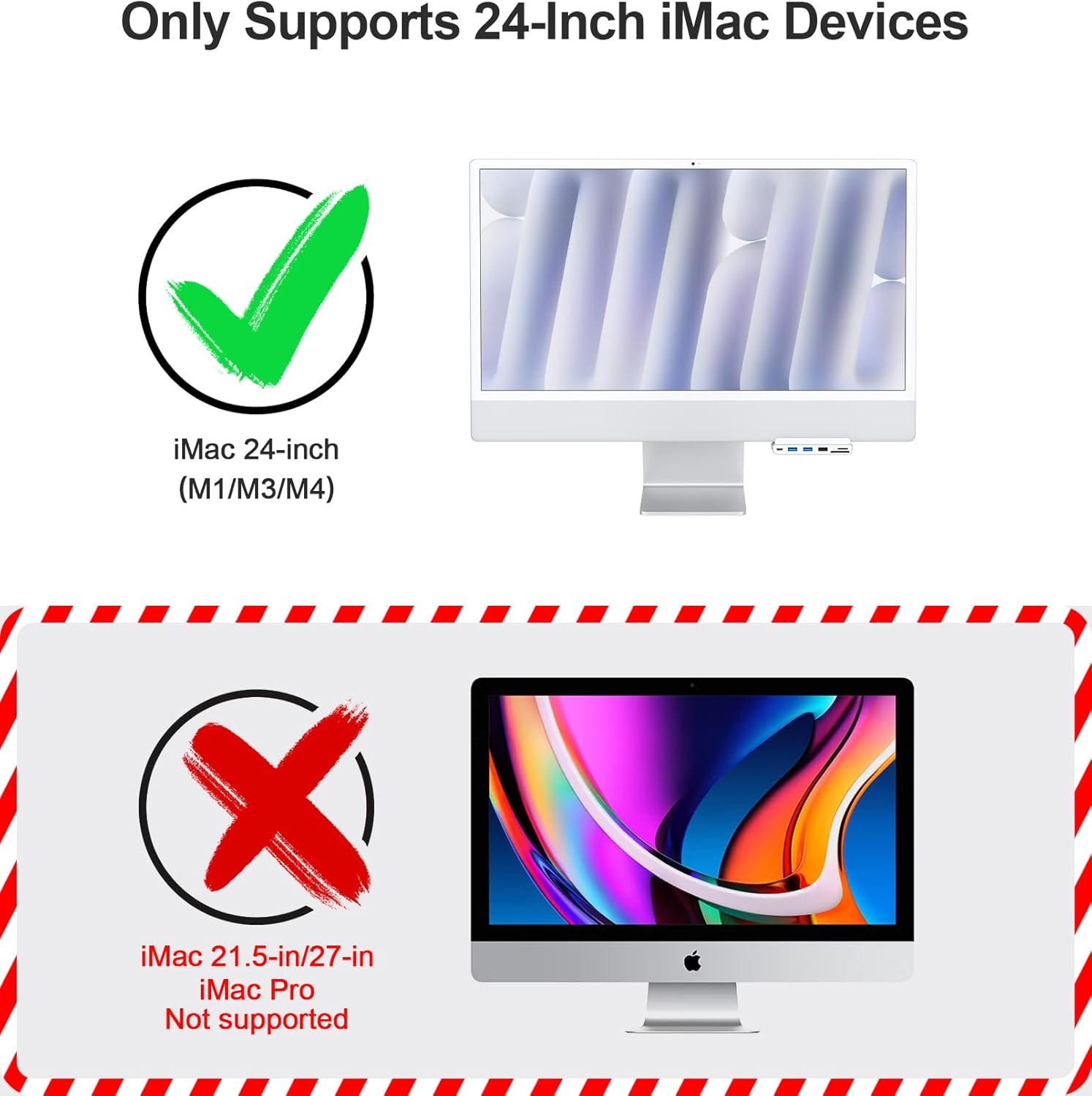 EXCLUSIVE TO IMAC – This USB C hub is designed specifically for the 2021 iMac 24-inch (M1) and 2023 iMac 24-inch (M3), NO OTHER MODELS CAN USE THIS USB C HUB.