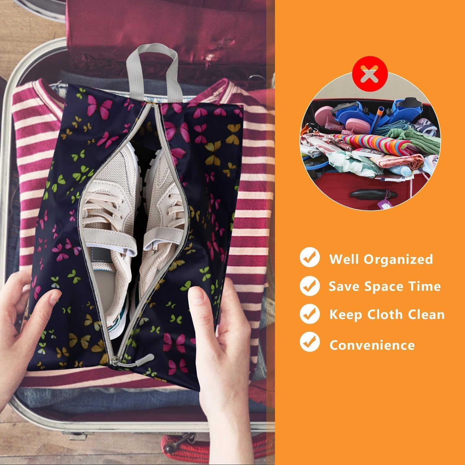 Not Just a Shoe Packing Cubes: Our shoe bags offer more than just a storage solution for your shoes. They can also be used as versatile organizers for various purposes. Use them as makeup bags, sneaker bags, toiletry bags, travel laundry bags, or gym item storage bags. Say goodbye to messy rooms and suitcases and enjoy the convenience and tidiness that these shoe bags bring to your daily life.