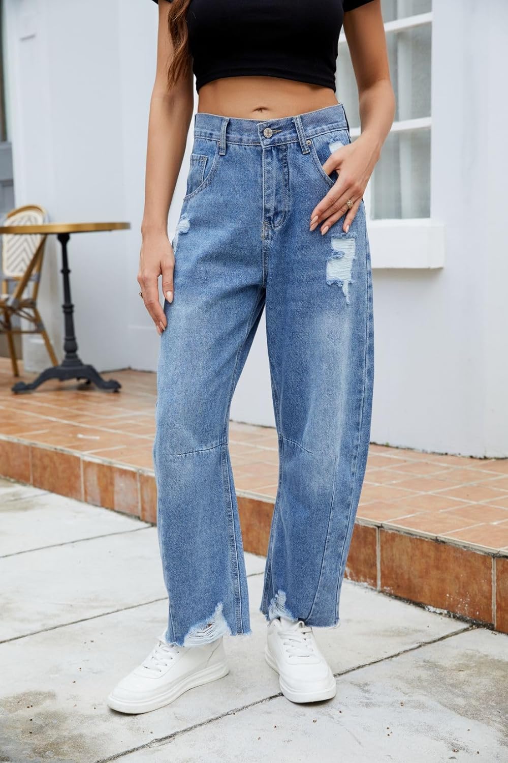 Allimy Womens High Waisted Barrel Horseshoe Baggy Jeans Trendy 2025 with Raw Hem Non Stretch