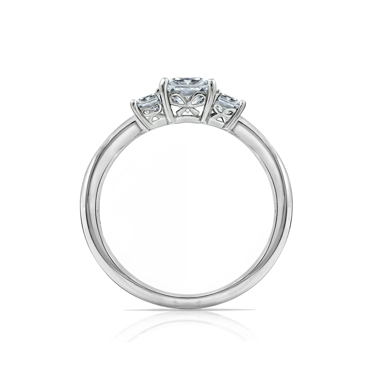 Amazon Essentials Platinum or Gold Plated Sterling Silver Princess-Cut 3-Stone Ring made with Infinite Elements Zirconia, (previously Amazon Collection)