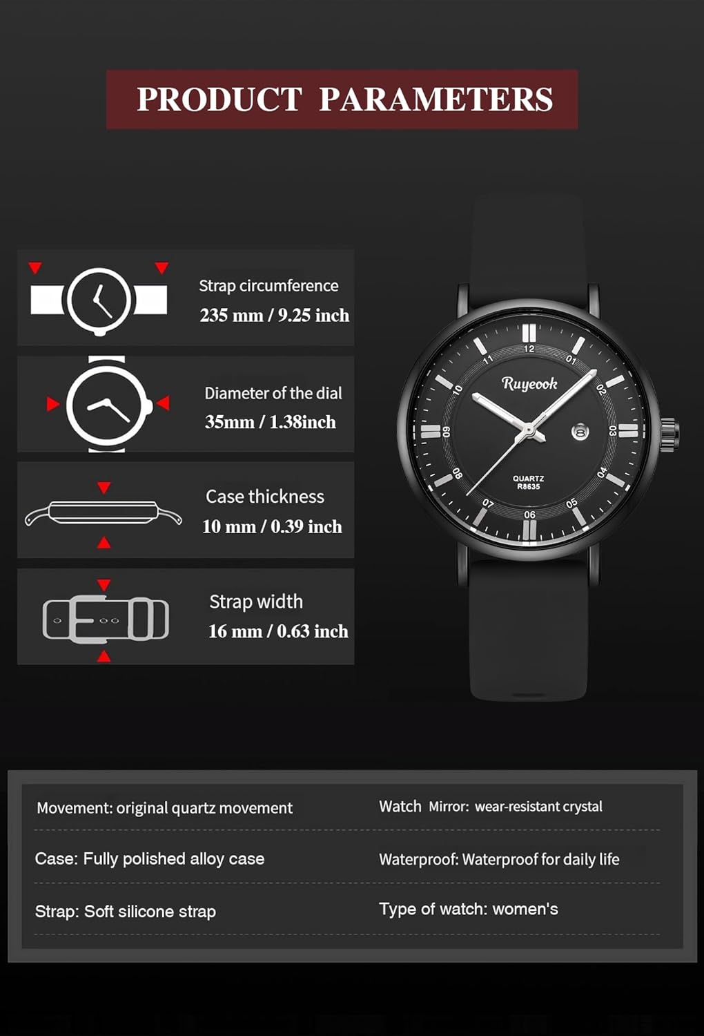 Soft silicone band provides flexibility and comfort during extended wear, perfect for daily use