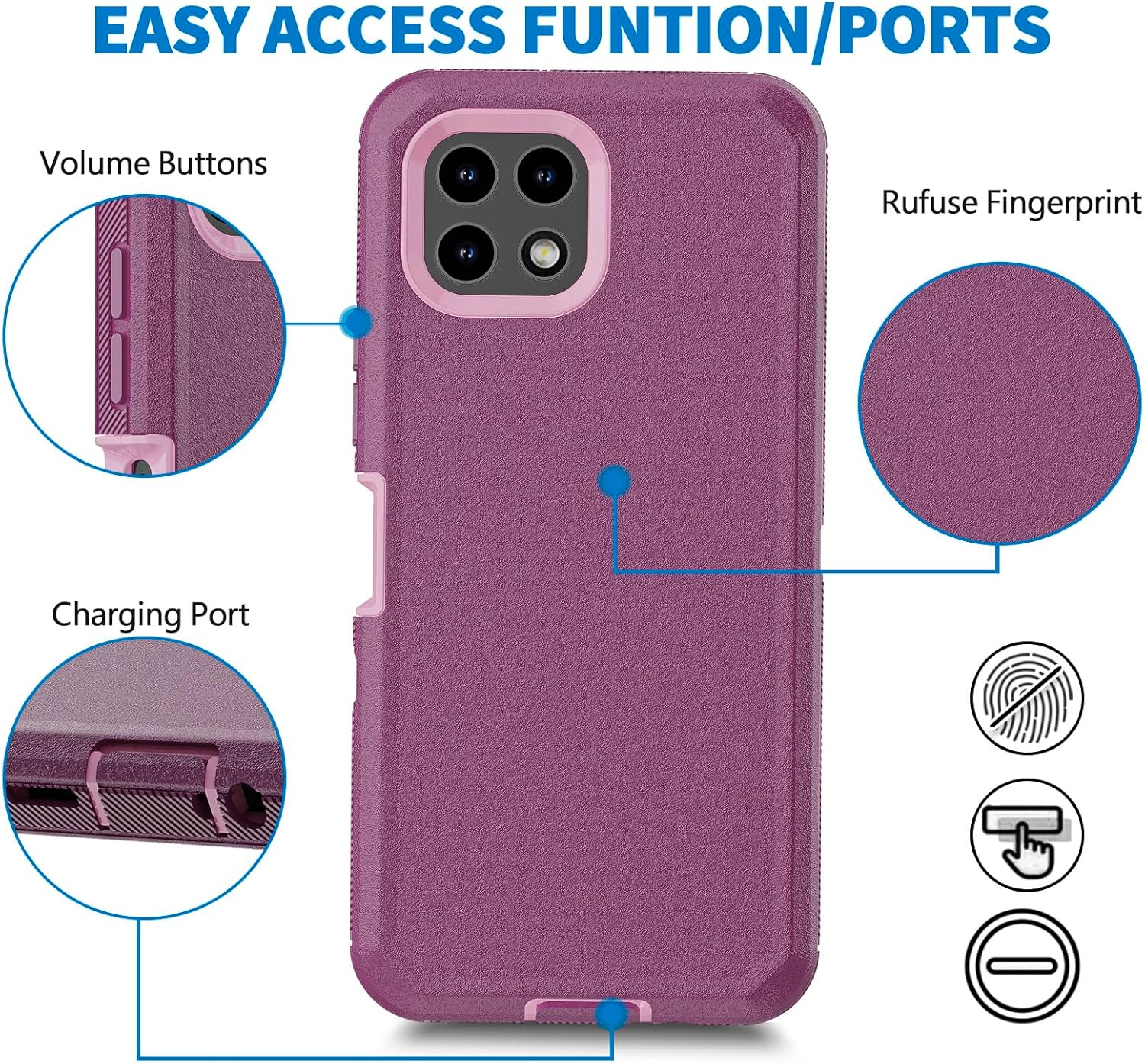 Anloes Case for T-Mobile Revvl 7 5G, Phone Case Heavy Duty Shockproof Dustproof Rugged Protective, 3 in 1 Bumper Cover for Revvl 7 5G(Without Built-in Screen Protector) (Purple)