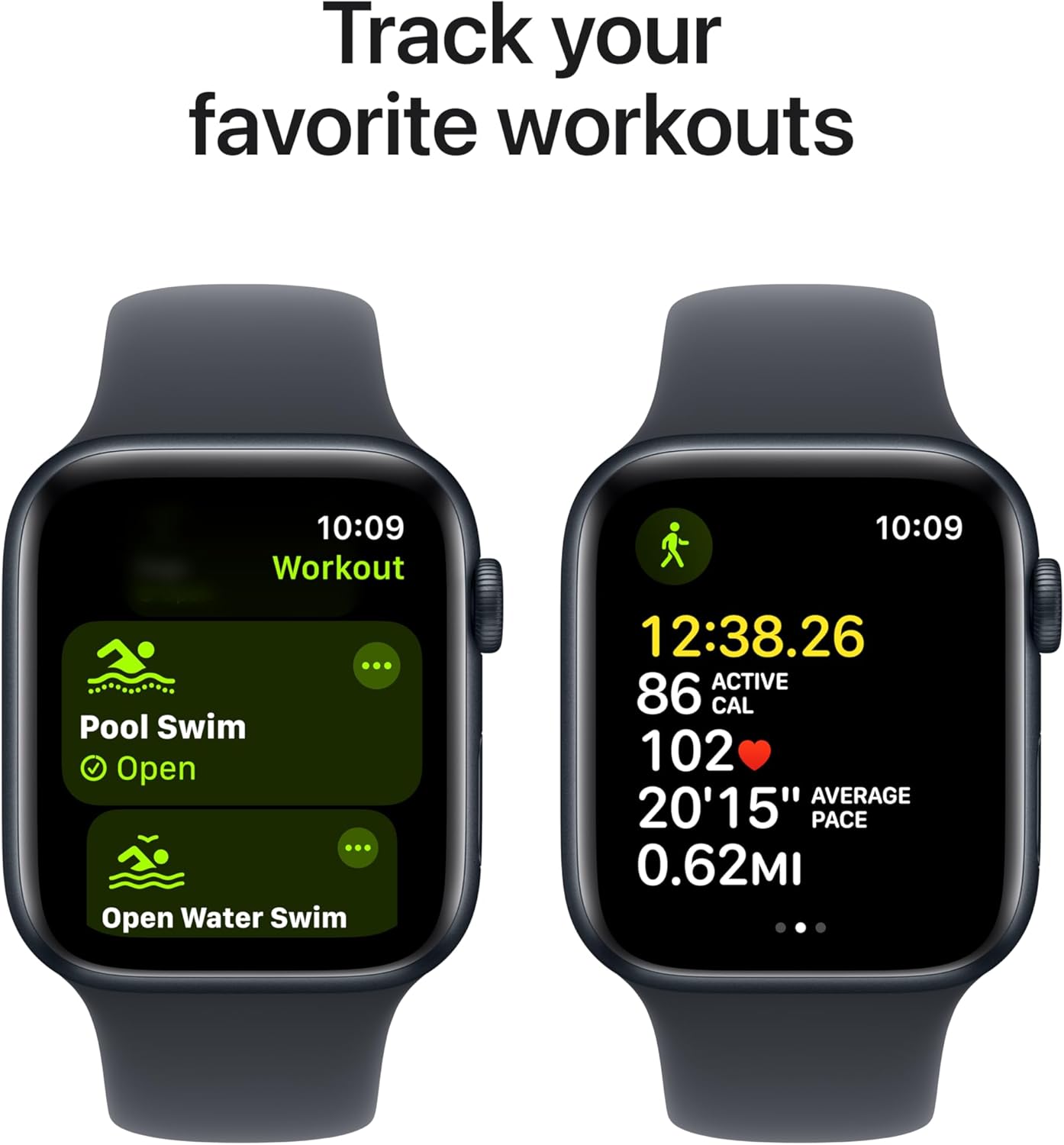 WHY APPLE WATCH SE — All the essentials to help you be motivated and active, keep connected, track your health, and stay safe. watchOS 11 brings more intelligence, personalization, and connectivity. With features like Fall Detection and enhanced workout metrics, Apple Watch SE is an incredible value.