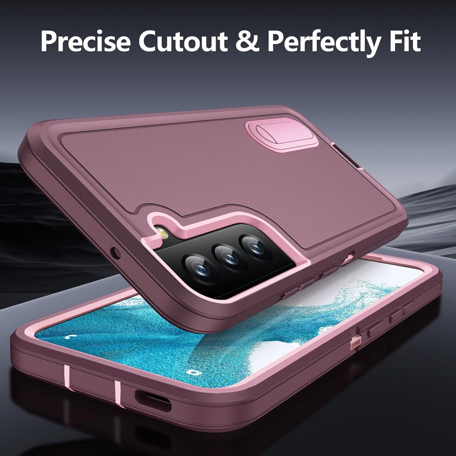 [Full Body Protection] This three-in-one combination of military grade tough protection S22 Case, Hard PC + Solid inner polycarbonate shell soft cushioning rubber outer S22 Protection cover, Four-corner grooved airbags, unique shock absorption design, more comprehensive protection of the fragile parts for the smartphone. Raised lips keeps camera lifted to prevent your lens from shock, collision and scratch. Dust Protection port plugs lock out dust, dirt so your device stays clean and debris free