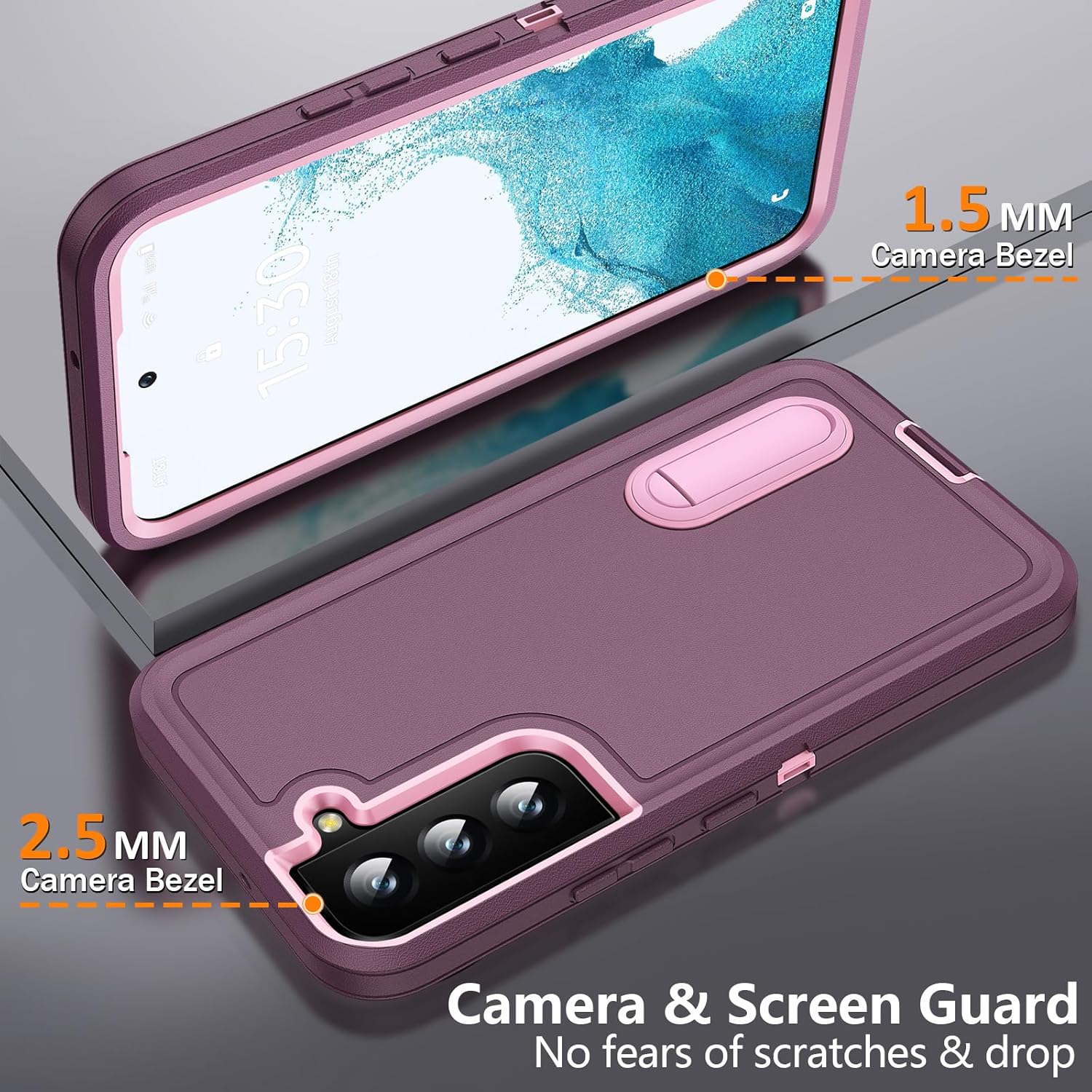 BaHaHoues for Samsung Galaxy S22 Case with Built in Kickstand,Shockproof/Dustproof/Drop Proof Military Grade Protective Cover for Galaxy S22 5G 6.1 inch(Night Purple/Baby Pink)