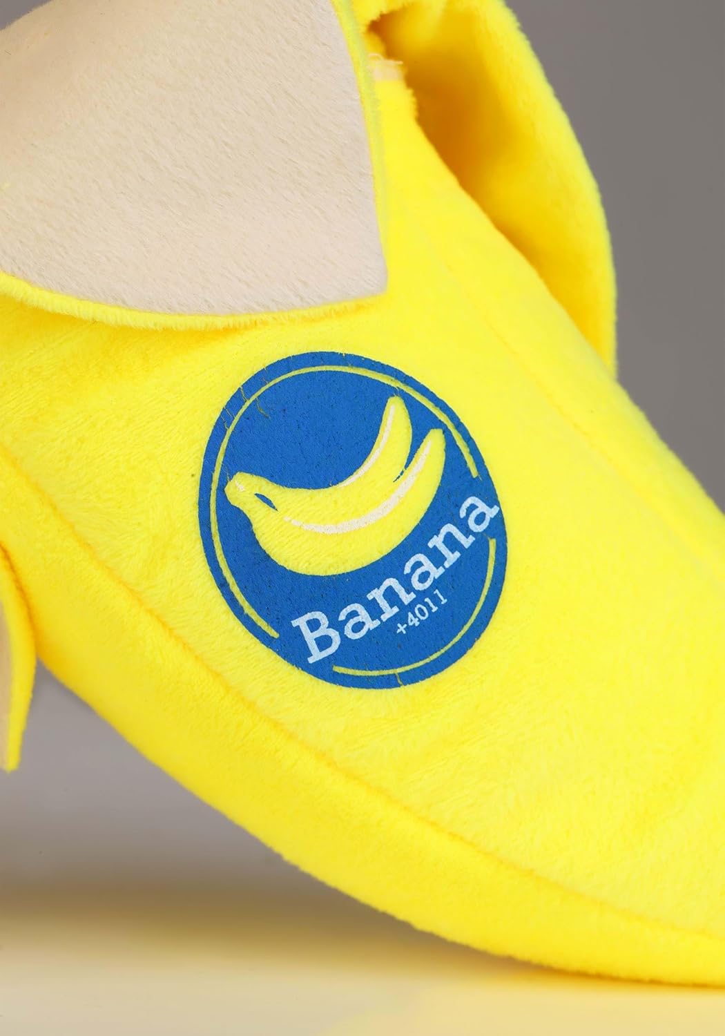 The detailed banana design includes a fun blue ?Banana? label printed on the front, adding a grocery store vibe to the peeled fruit look. A fantastic conversation piece and themed prop that brings silly snack style to any costume ensemble.