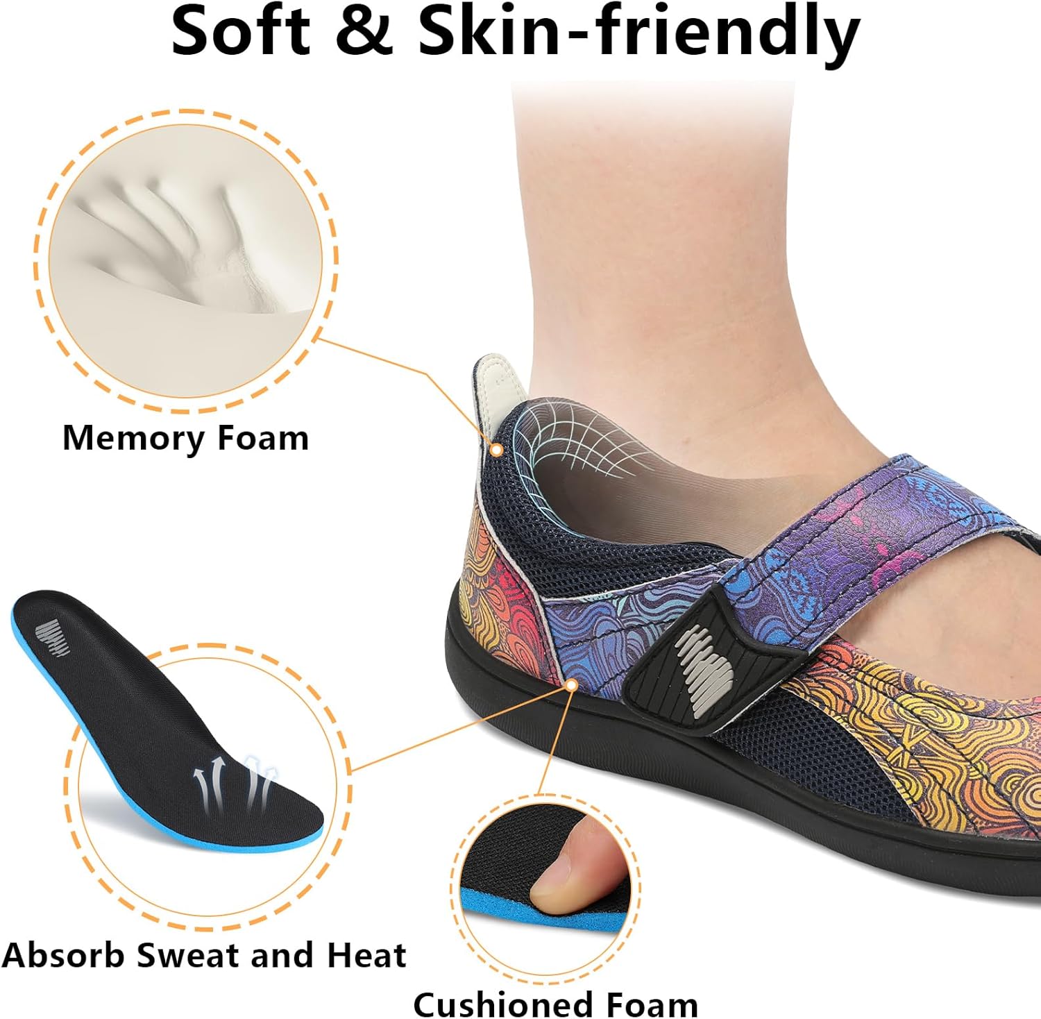 BARERUN Womens Walking Shoes Classic Mary Jane Flats Wide Toe Diabetic Shoes for Women Adjustable Breathable Lightweight Daily Barefoot Shoes