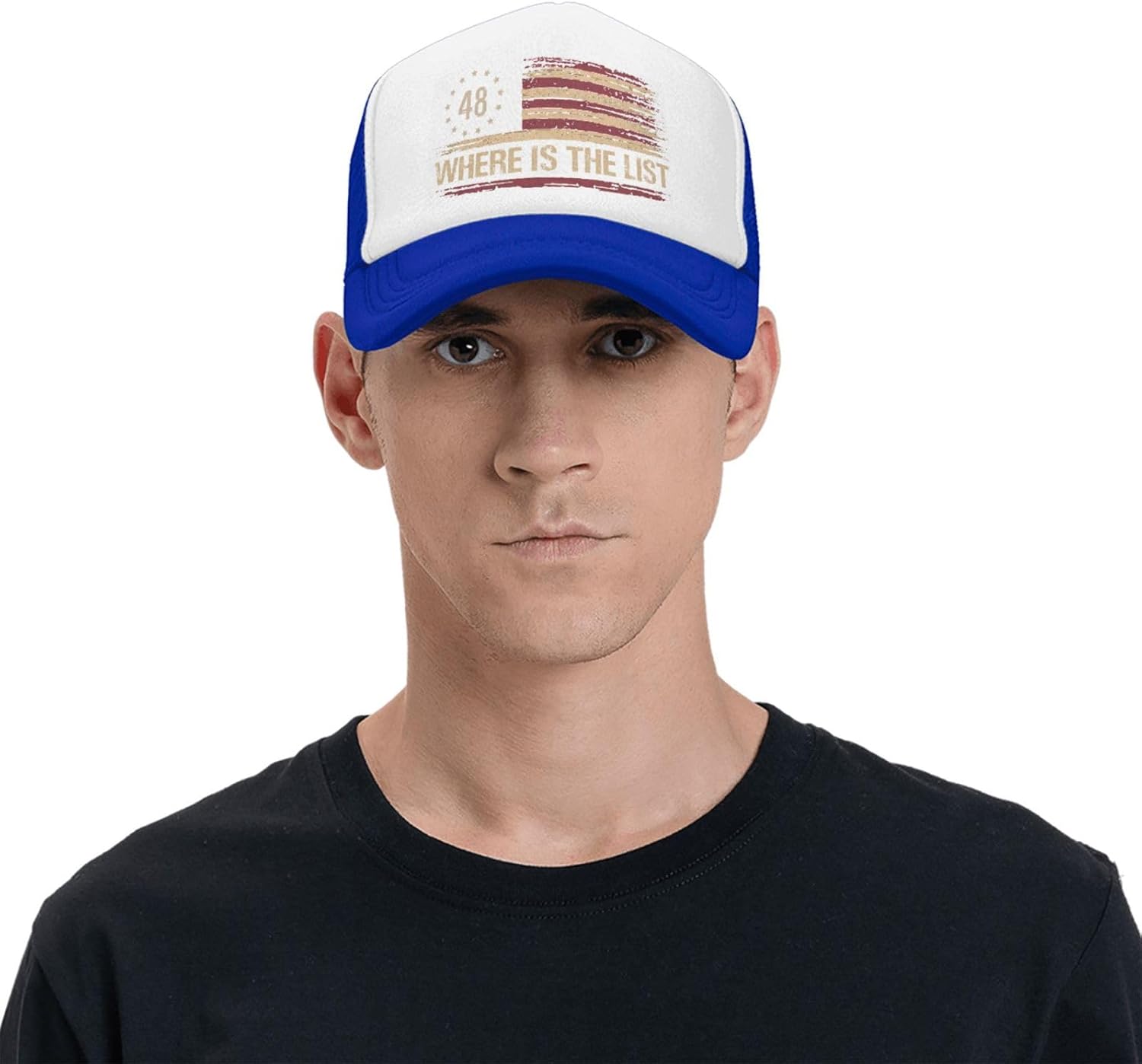 Baseball Cap Where Is The List Trucker Hat Unisex Black.100% Polyester. The Hat Is Fit, Style And Durability.Thick Fabric, Hard Feel, Cap Reinforcement, Oxford Lining, Natural Comfortable And Breathable, Light And Dry, Add Sweatband Inside, Absorb Sweat And Drain