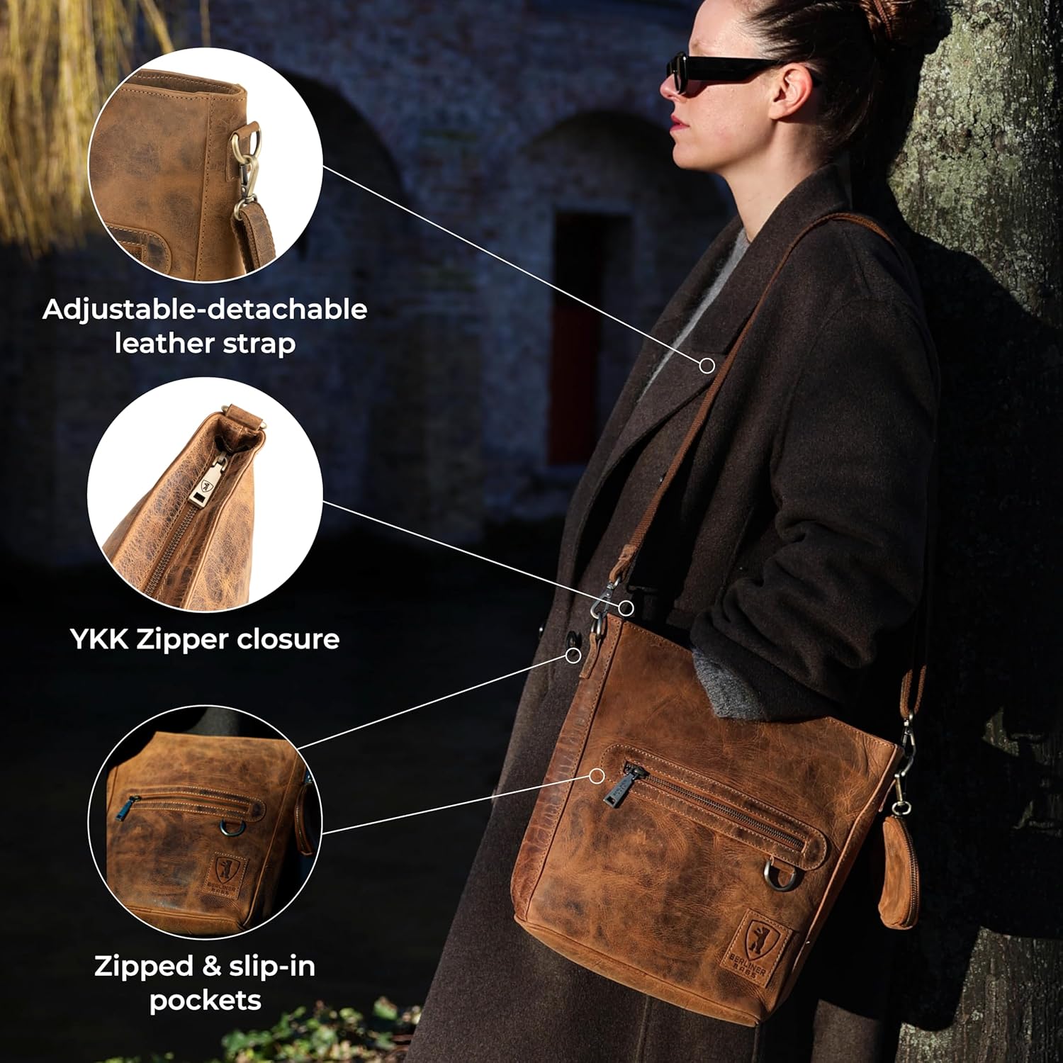 Be the first to review “BERLINER BAGS Vintage Genuine Leather Shoulder Bag Siena, Handbag, Crossbody Bag for Women”