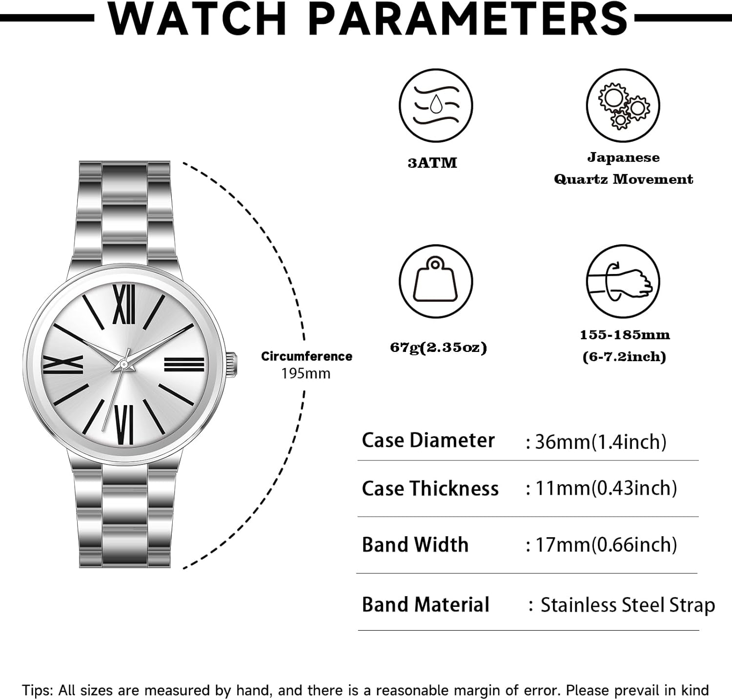 Bisley 36MM Women Watch Stainless Steel Bracelet Watch Easy to Read