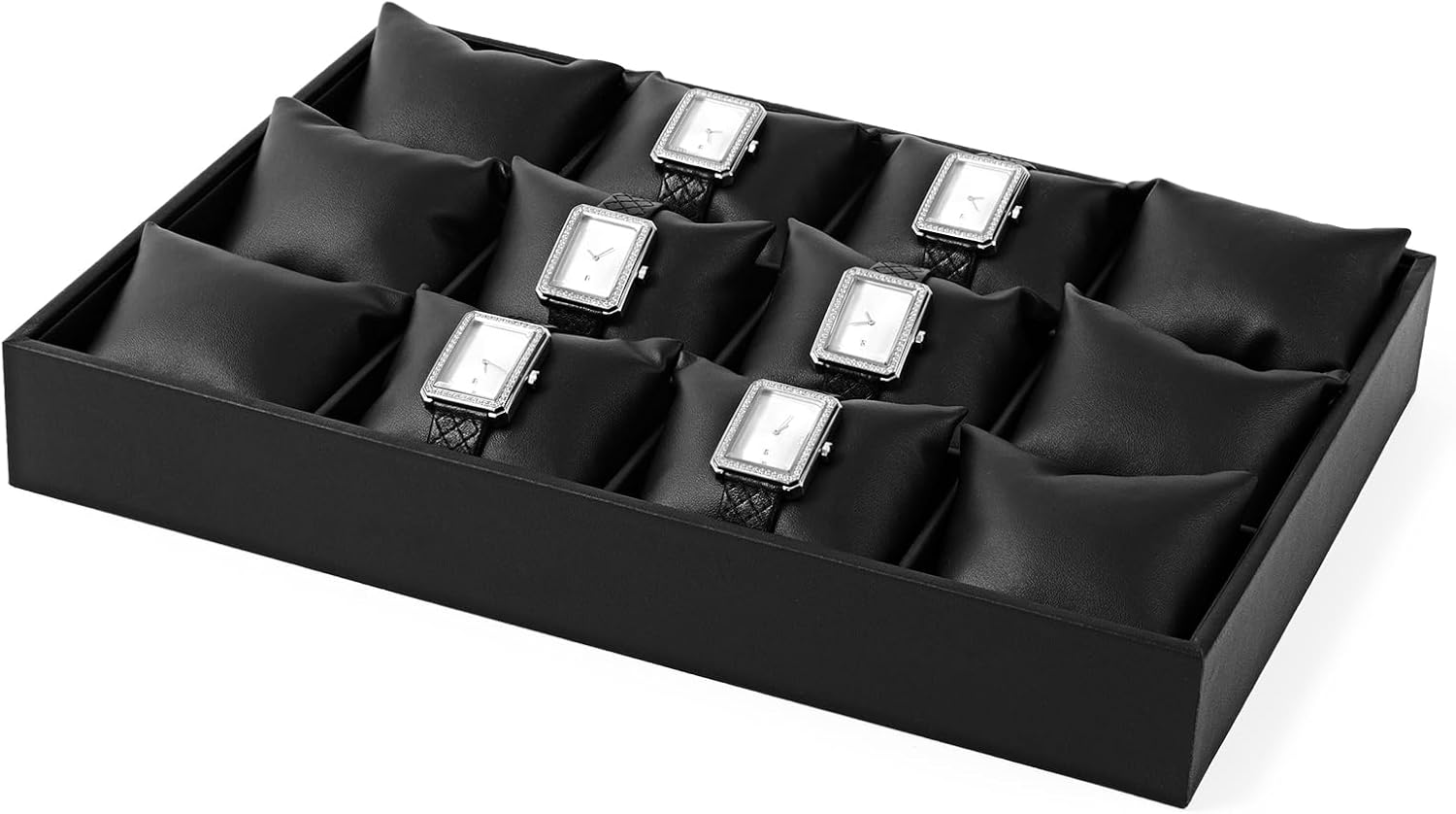 Elevate Your Watch Collection This premium 12-slot PU leather watch tray combines functionality with sophistication. The scratch-resistant PU exterior ensure your timepieces stay pristine, whether you own luxury brands or everyday watches.