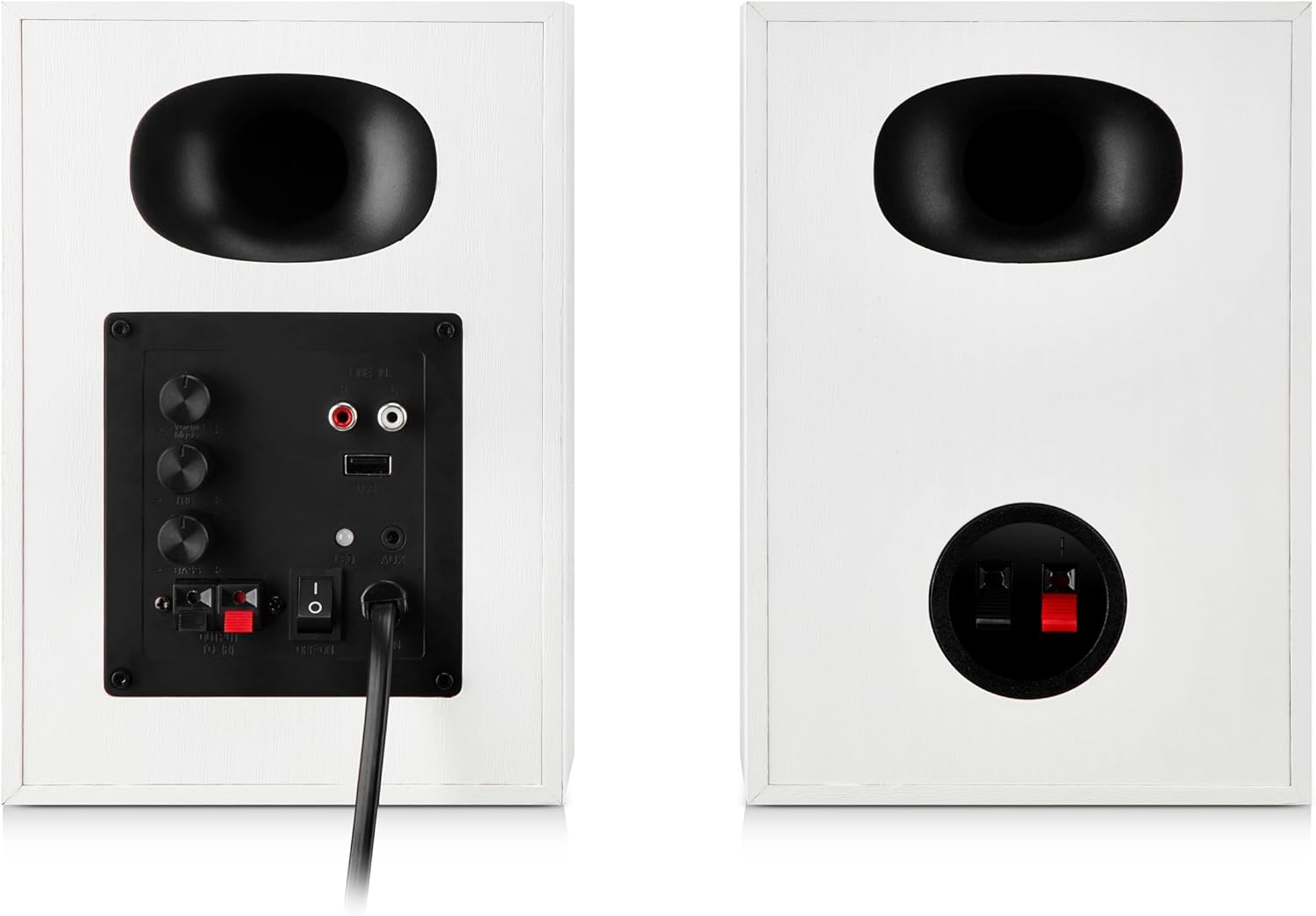 Connect via ​​3.5mm AUX or RCA​​ for PCs, TVs, and turntables – ​​or use Bluetooth​​ for wireless streaming from laptops, tablets, and smartphones. Need the cable? Choose the bundle above for both speakers & cable!