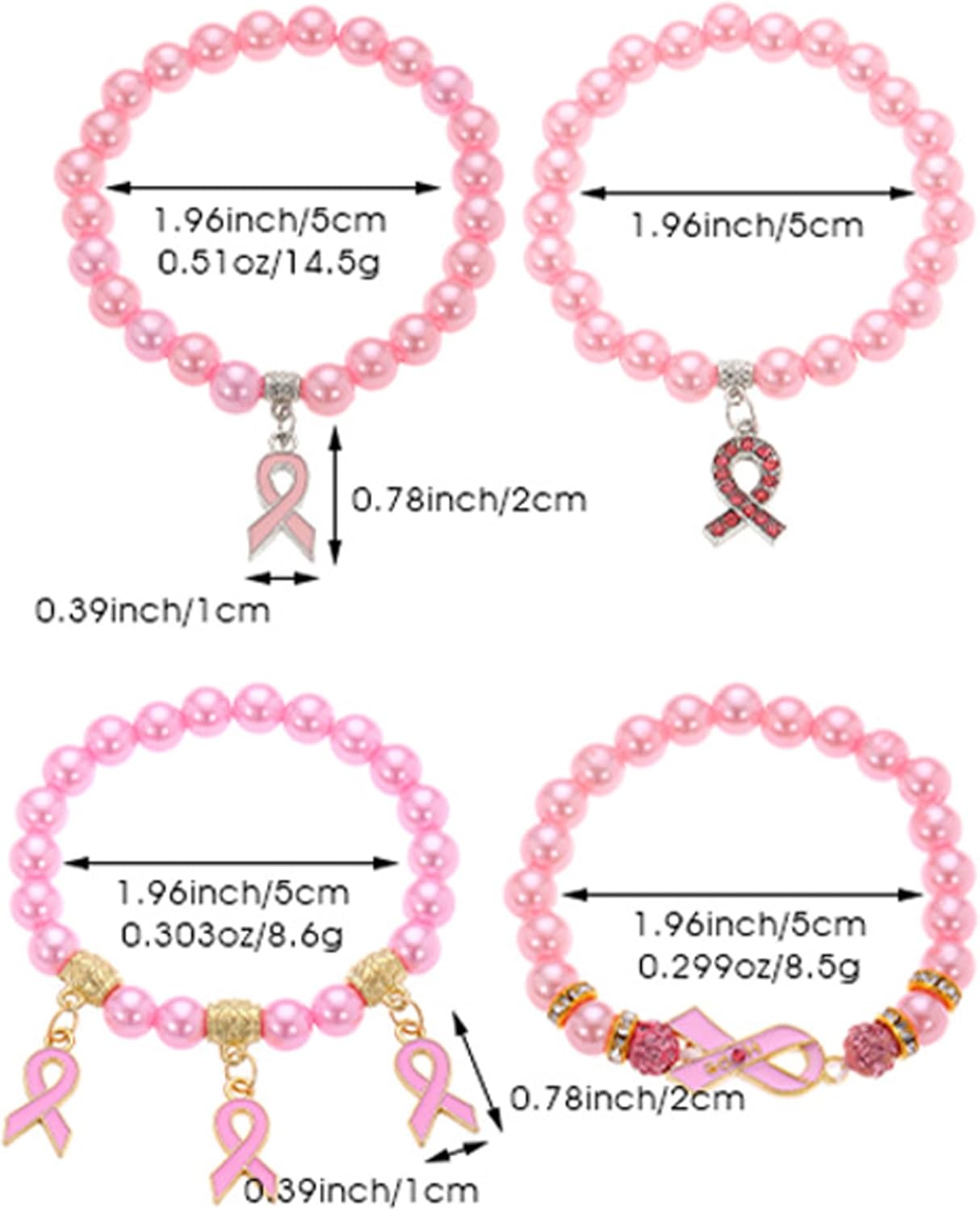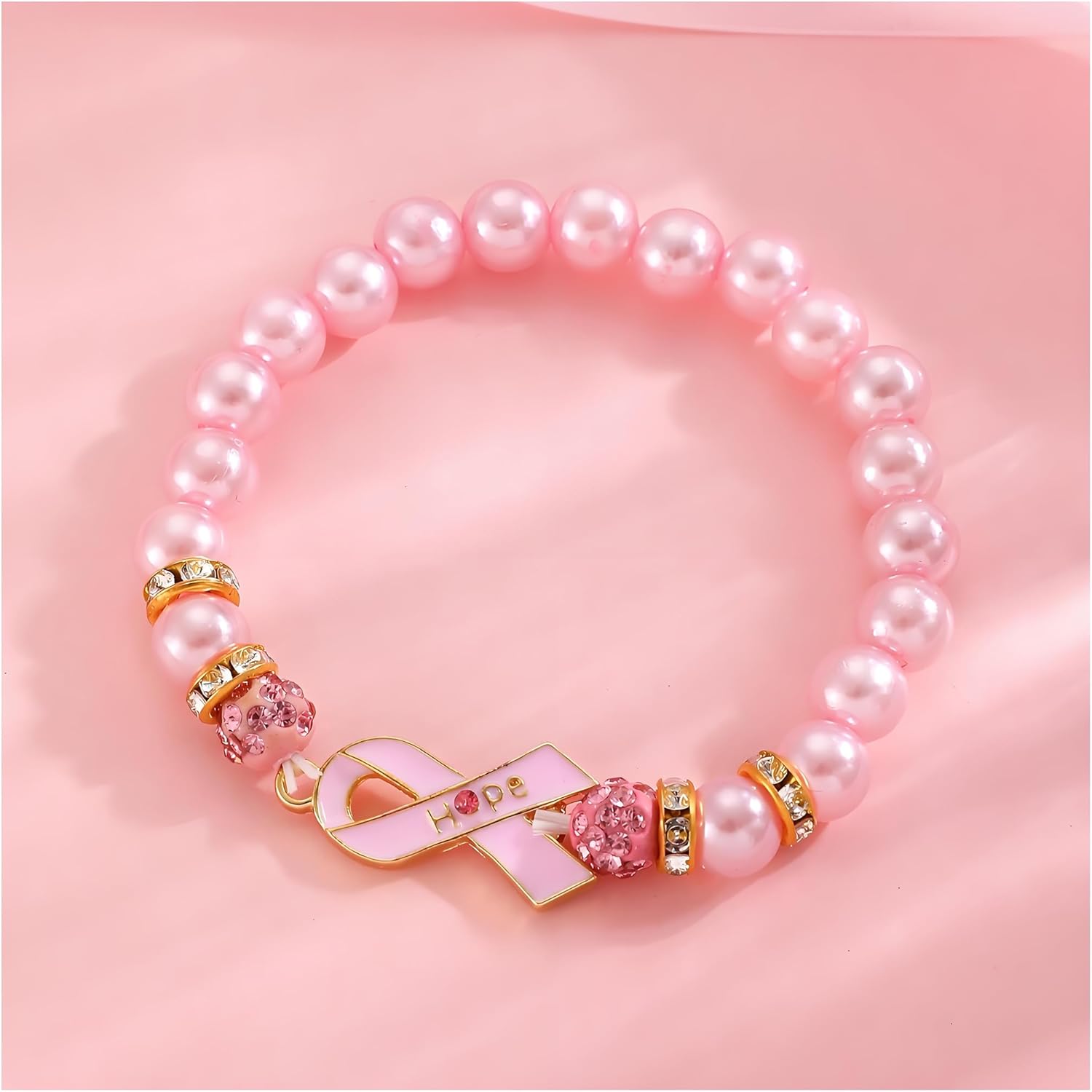 Breast Cancer Awareness Bracelets Pink Ribbon Charm Beads Bracelet for Women Encouragement Breast Cancer Jewelry